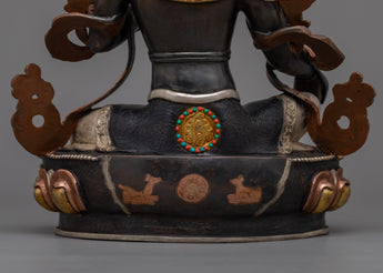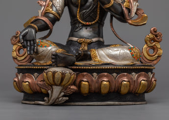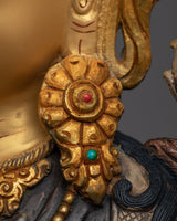 We carefully handmade this statue using a century-old Nepali sculpting tradition. To sculpt the gorgeous Green Tara, we used a copper body to mold the statue, 24k gold to paint her face and acrylic paintings, and silver plating on some parts to give her a vibrant appearance.