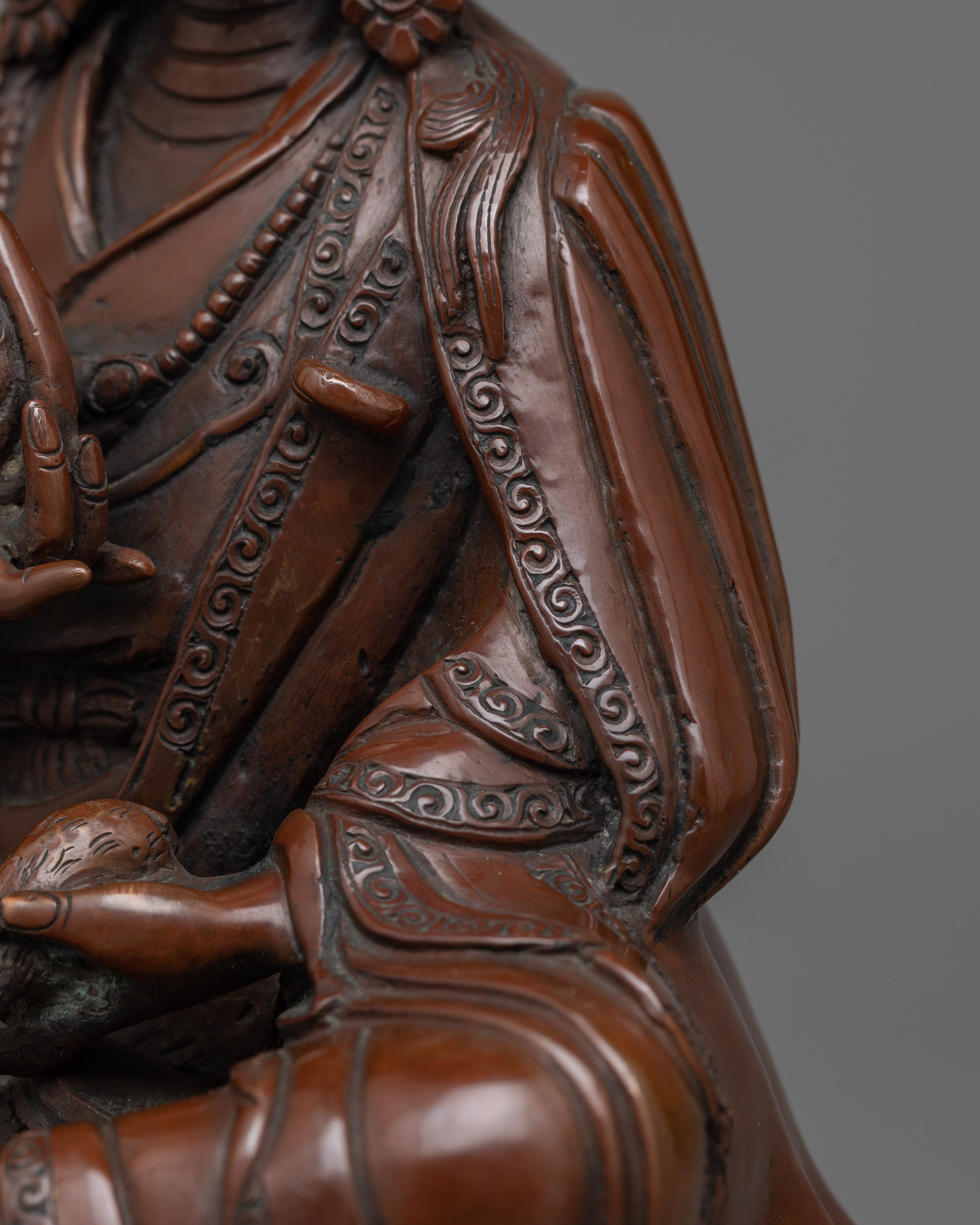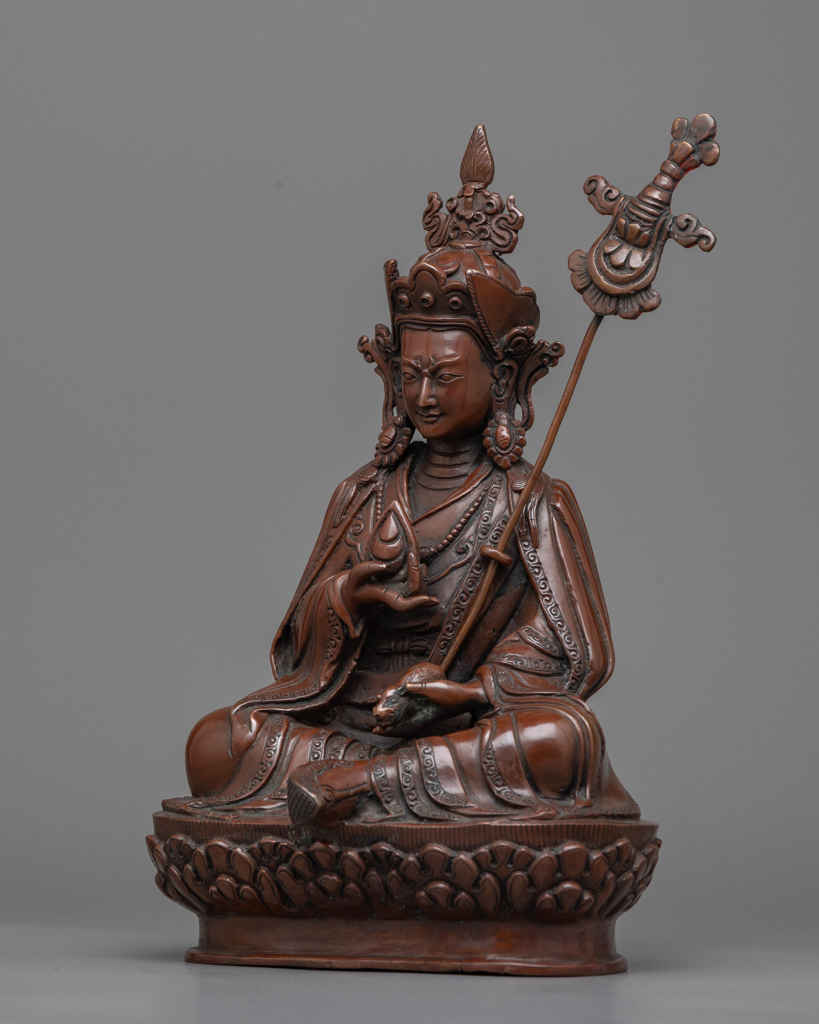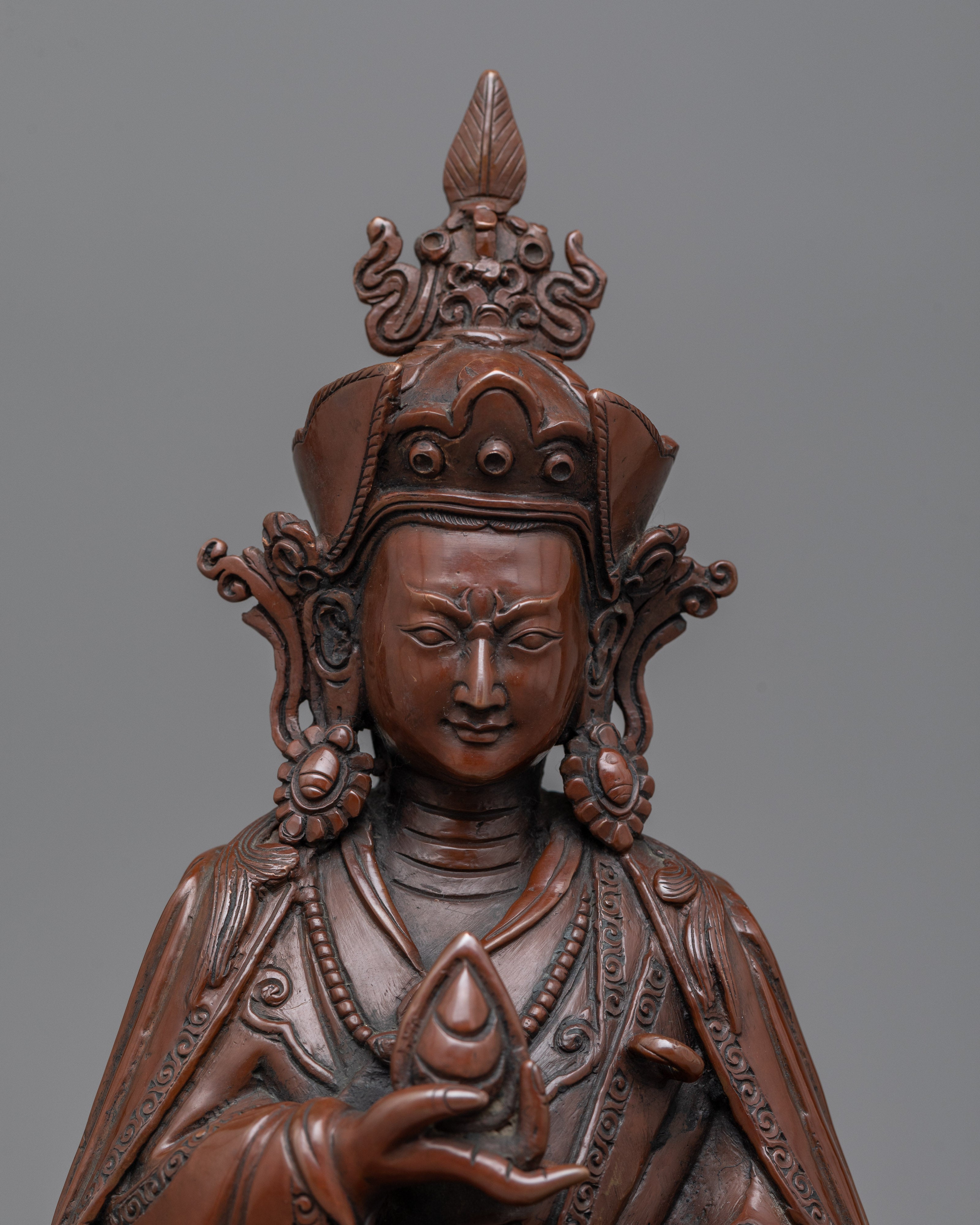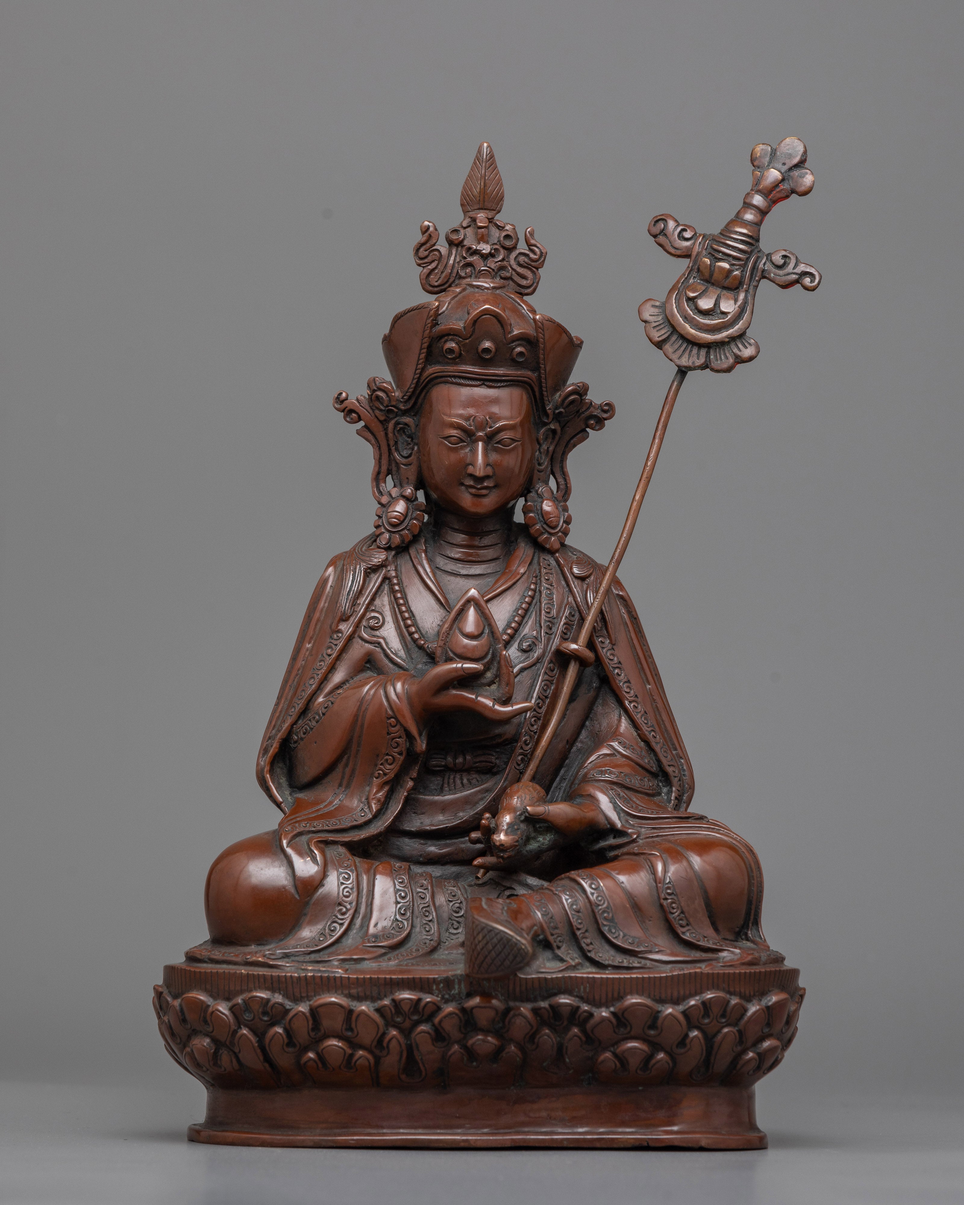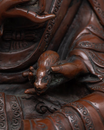 As a manifestation of Guru Padmasambhava (Guru Rinpoche) and a wealth deity, Guru Orgyen Norla is highly esteemed. He embodies the guru component specifically concerned with promoting wealth and prosperity and removing impediments. This figure represents the idea that spiritual practice and material prosperity can coexist peacefully and is frequently called upon in rituals intended to overcome financial obstacles and ensure the success of endeavors. This special quality is masterfully captured in the Guru Orgyen Norla Sculpture, which provides a concrete link to the divine assistance needed to attain both spiritual enlightenment and material prosperity.