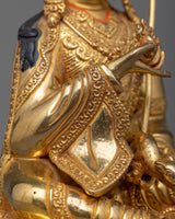 Introducing the Guru Orgyen Norla Sculpture from the Collection, a stunning representation of this respected Tibetan Buddhist deity. This 9-inch-tall statue depicts Guru Orgyen Norla, a manifestation of Guru Rinpoche (Padmasambhava) in a wealth-bestowing form, representing prosperity and spiritual richness.