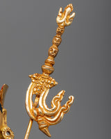 Our Gold Gilded Statue of Guru Rinpoche is a stunning depiction of the famed Tibetan Buddhist guru. This statue, with a modest height of 9.4 inches and a base width of 5.9 inches, is an ideal complement to any environment seeking spiritual depth and wisdom.