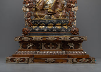 Guru Rinpoche, also known as Padmasambhava, is considered the second Buddha' in Tibetan Buddhism. He is credited with popularizing Buddhism in Tibet and is frequently shown seated on a lotus throne, a symbol of his miraculous lotus birth.