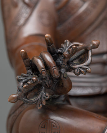 Our exquisite Guru Rinpoche Statue brings the grace and majesty of the Lotus Born Master Padmasambhava to your home. Handcrafted from the finest copper alloy, the 20.8-inch tall figure exudes beauty and wonder, a perfect piece for any collector of luxury art. Bring a sense of serenity to your space with this graceful and timeless reminder of the power of the Tantric Buddhist Vajra Master.