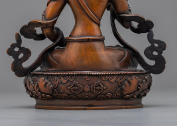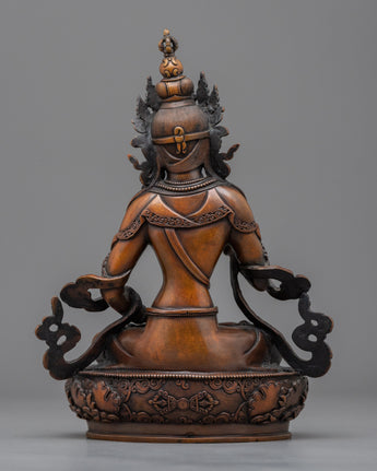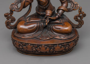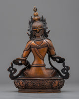 The Handcrafted Vajrasattva Statue will infuse your sacred place with tremendous energy. This majestic work of art, which stands 9.4"/24 cm tall and weighs 1.62 kg, has an exquisitely carved oxidized copper body. Blessed with a transforming presence, Vajrasattva nourishes your surrounds. Known in Buddhist tradition as the embodiment of spiritual purity and enlightenment. the Handcrafted Vajrasattva Statue in welcoming the radiant energy into your life and set out on a path towards enlightenment and spiritual development.
