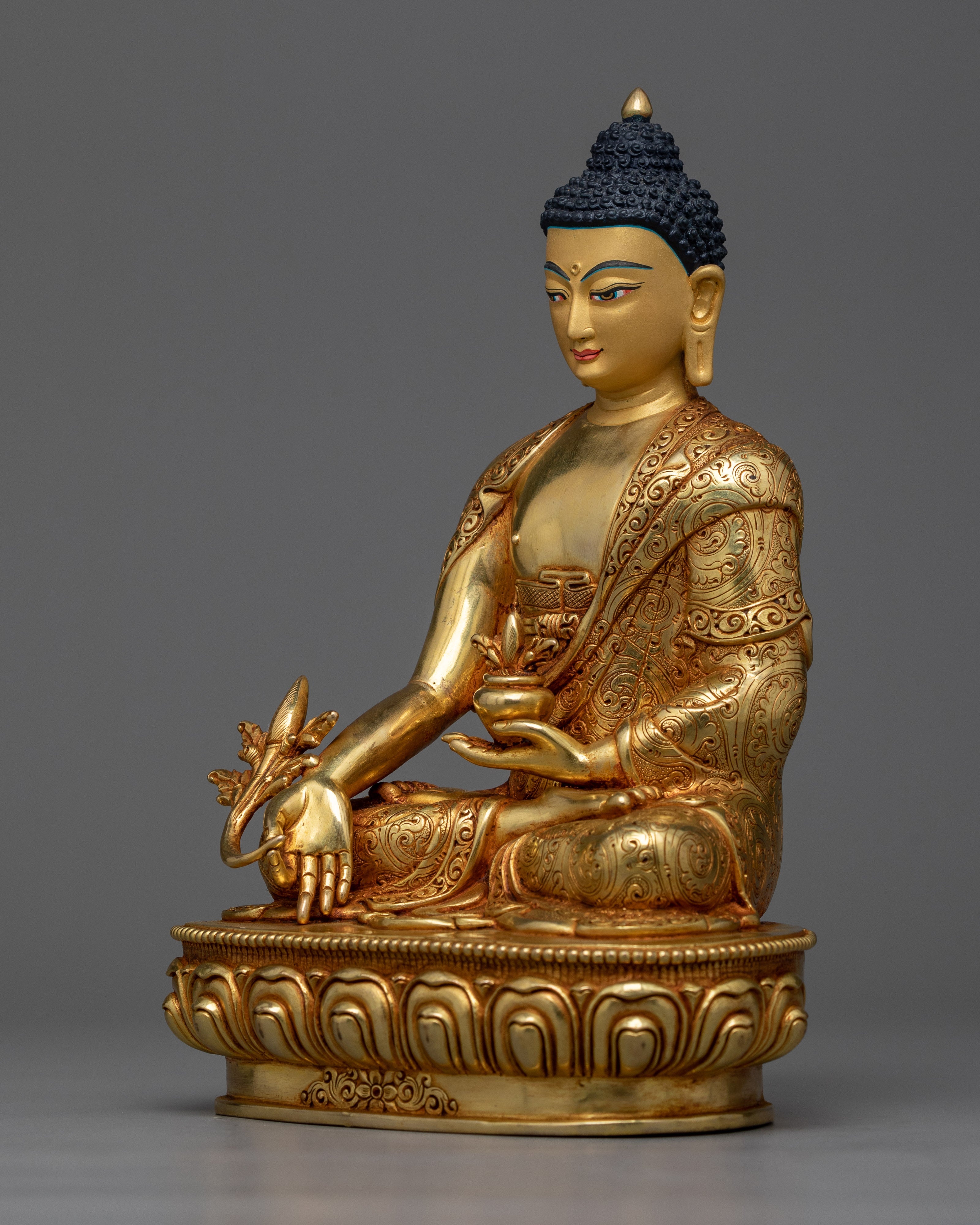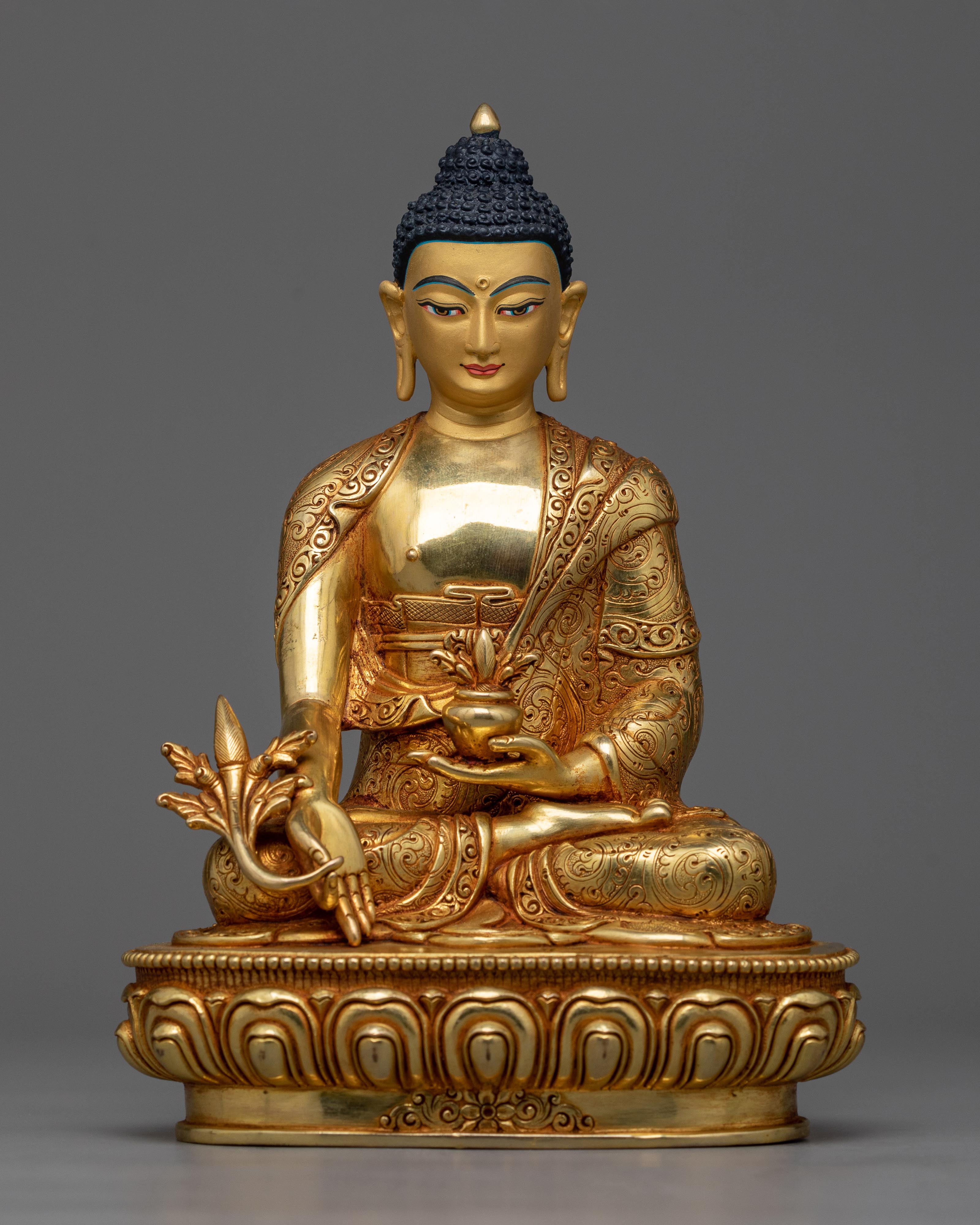 Healing Touch of Medicine Buddha Sculpture | 24K Gold Gilded Statue