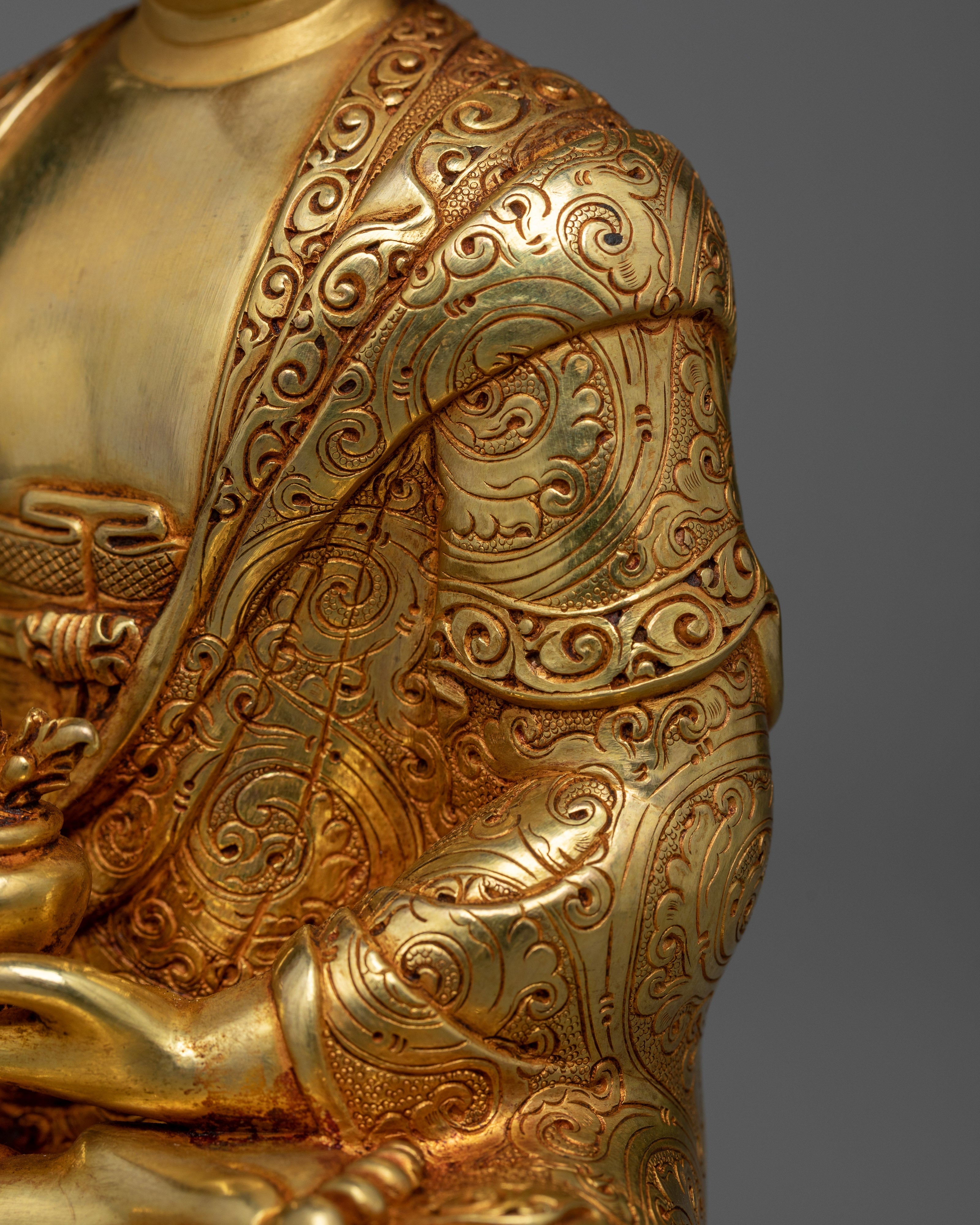 Each aspect of this statue, from the tranquil look to the intricate patterns, is meticulously hand-painted, bringing the Medicine Buddha's caring spirit into your home. This sculpture is ideal for people who want to combine spiritual progress with physical healing in their meditation or yoga practice.