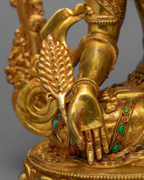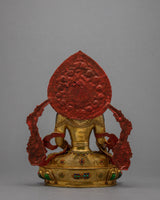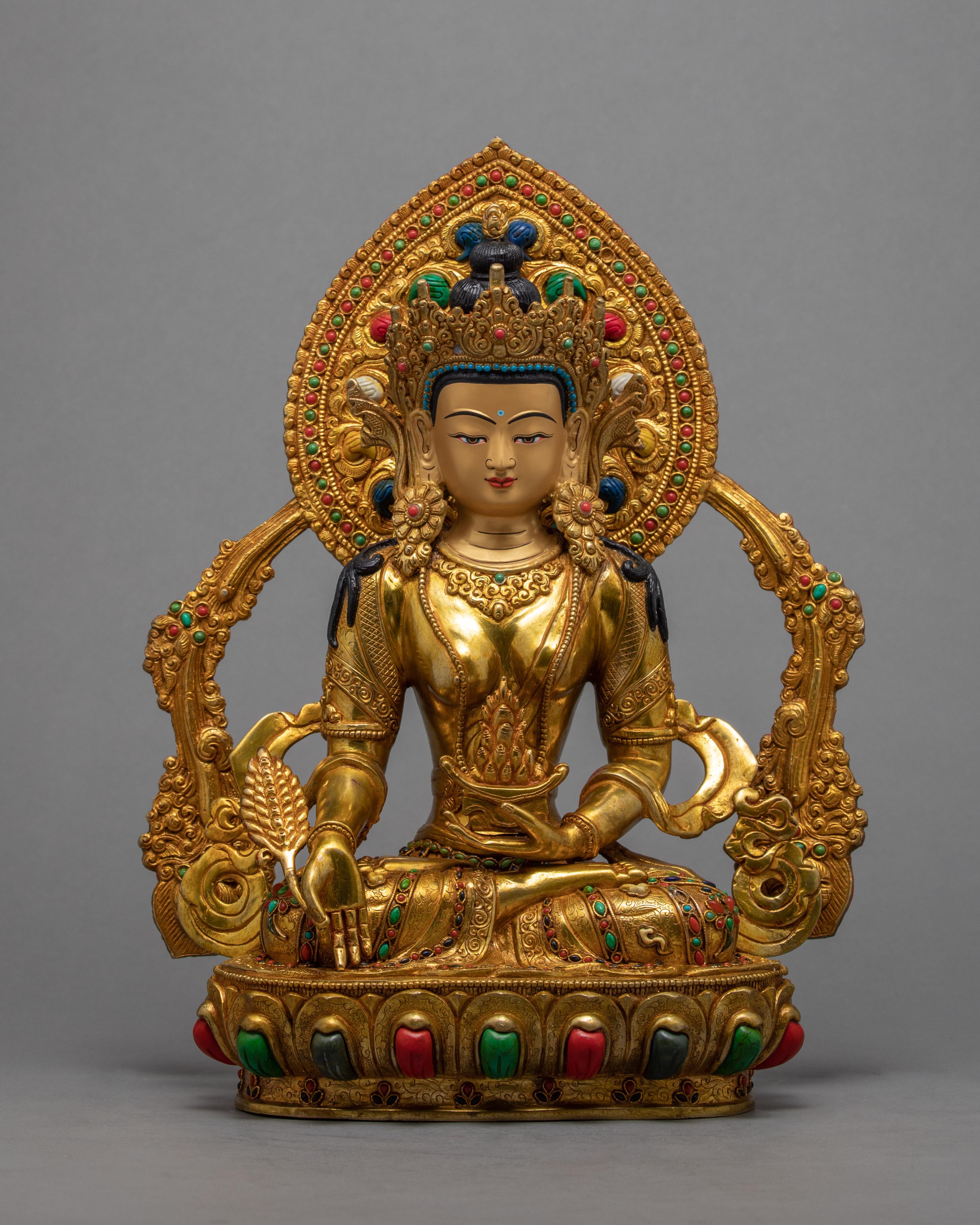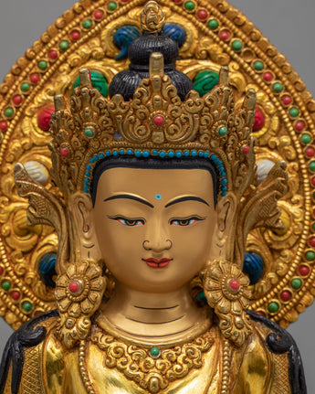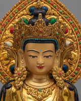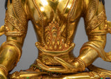 The Himalayan Buddhist Sculpture of Kistigarbha stands at a height of 14.1 inches (36 cm) with a base width of 8.6 inches (22 cm) and weighs 4.770 kg. Crafted from durable copper, the statue is beautifully gilded with 24K gold, giving it a luxurious and radiant finish. This handcrafted work of art is perfect for collectors, spiritual practitioners or as a meaningful addition to any home or meditation space.