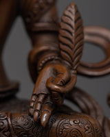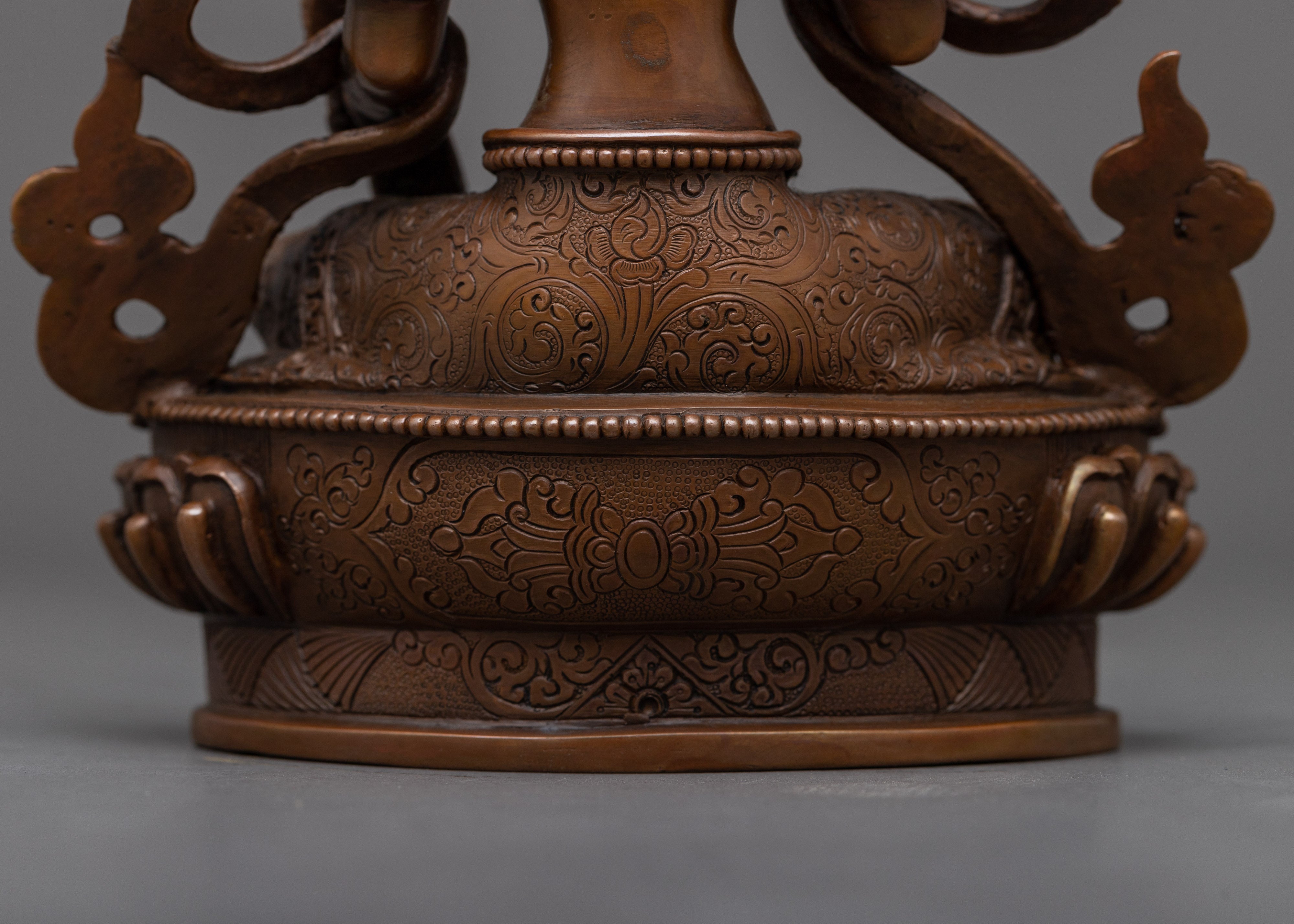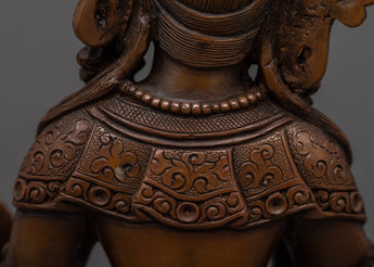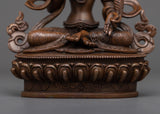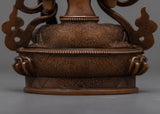 Himalayan Sculpture of Female Kistigarbha stands at a height of 6.6 inches (17 cm) with a base width of 4.7 inches (12 cm) and weighs 0.874 kg. Crafted from oxidized copper, the statue features a unique antique finish, adding a timeless and distinguished appearance. Its carefully detailed design reflects fine craftsmanship, making it a perfect addition to any space, whether for spiritual practice, as a decorative piece, or as part of a collection.