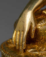 Introducing the Historical Buddha Gilt Statue, a brilliant depiction of Buddhism's founder, Siddhartha Gautama, who attained enlightenment and was dubbed the Buddha. This statue, which stands 8.6 inches tall on a 5.5-inch base and weighs 1.34 kg, embodies the profound knowledge and tranquil grace of the Buddha. This sculpture, which is made of a copper body and has intricate gold and acrylic paintings together with 24K gold plating, captures the spiritual purity and enlightening presence of the historical Buddha.