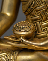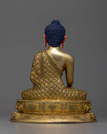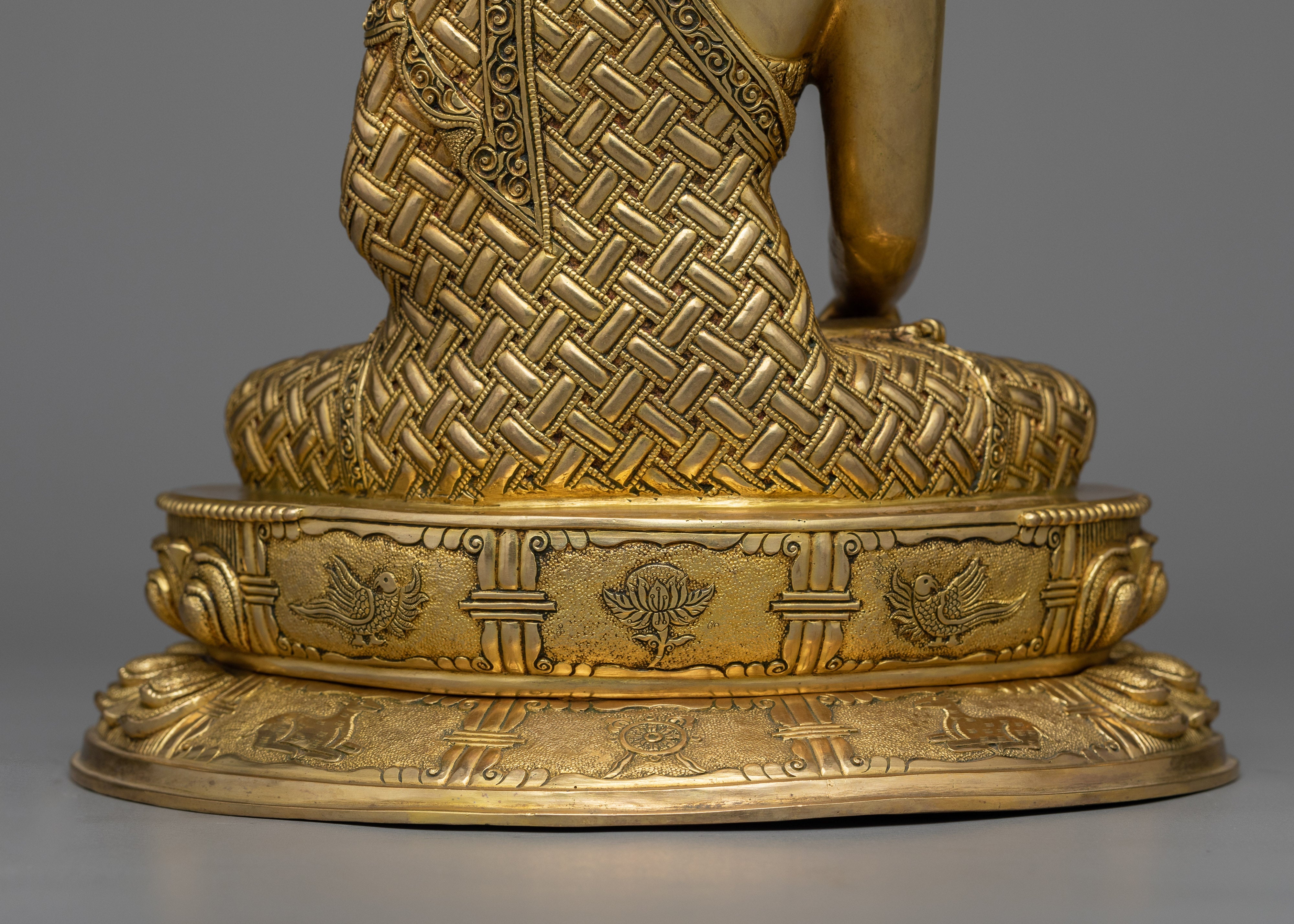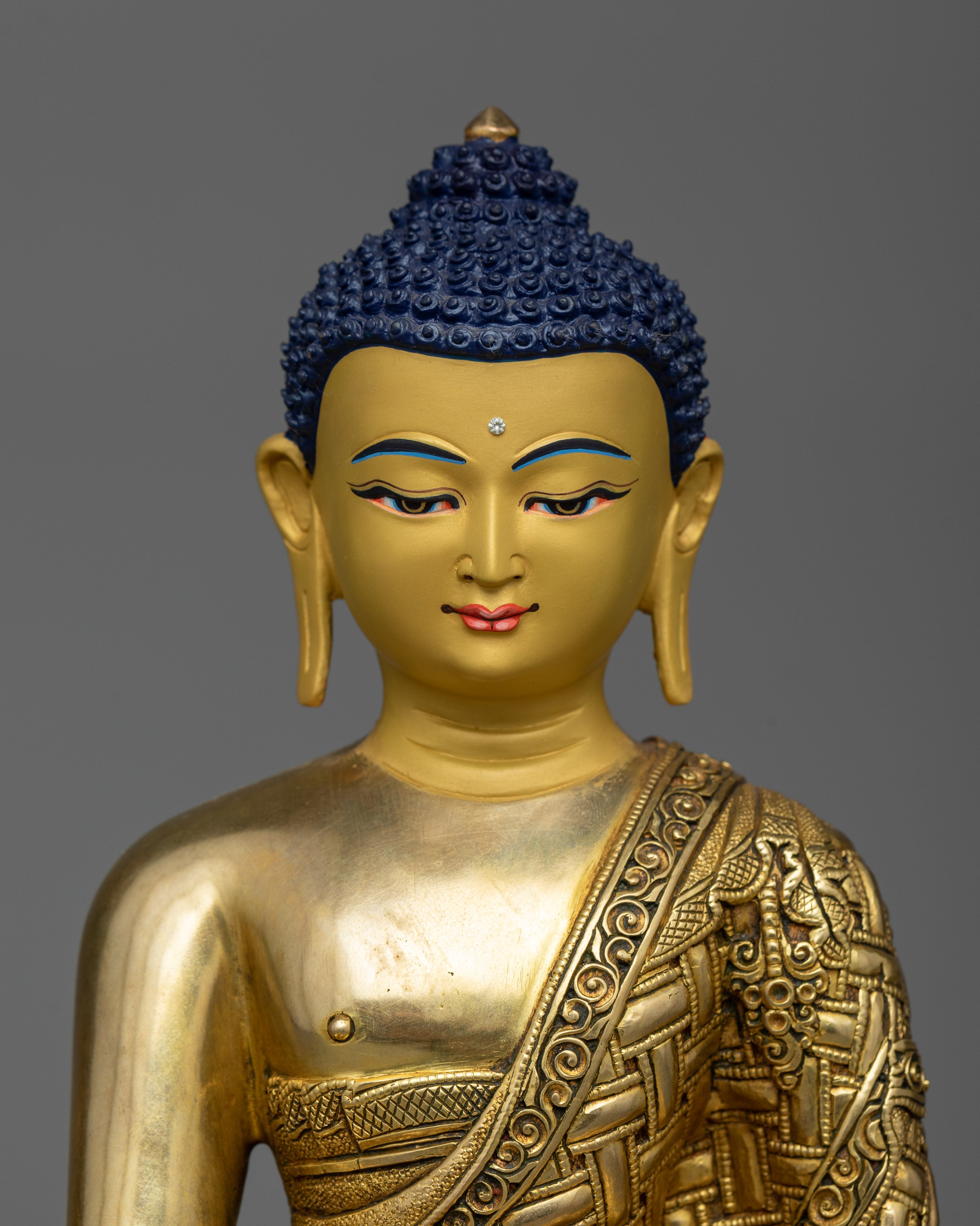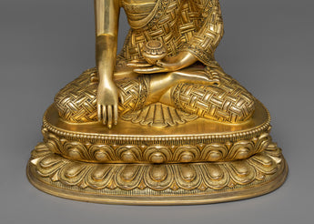 A lavish 24K gold gilding highlights the exquisite beauty and minute intricacies of the Buddha's robes, tranquil demeanor, and significant mudras. The sculpture was painstakingly crafted from premium copper. The gold & acrylic paintings add layers of vibrancy and depth, capturing the essence of the Buddha's compassionate gaze and the tranquil demeanor that has guided millions of followers.