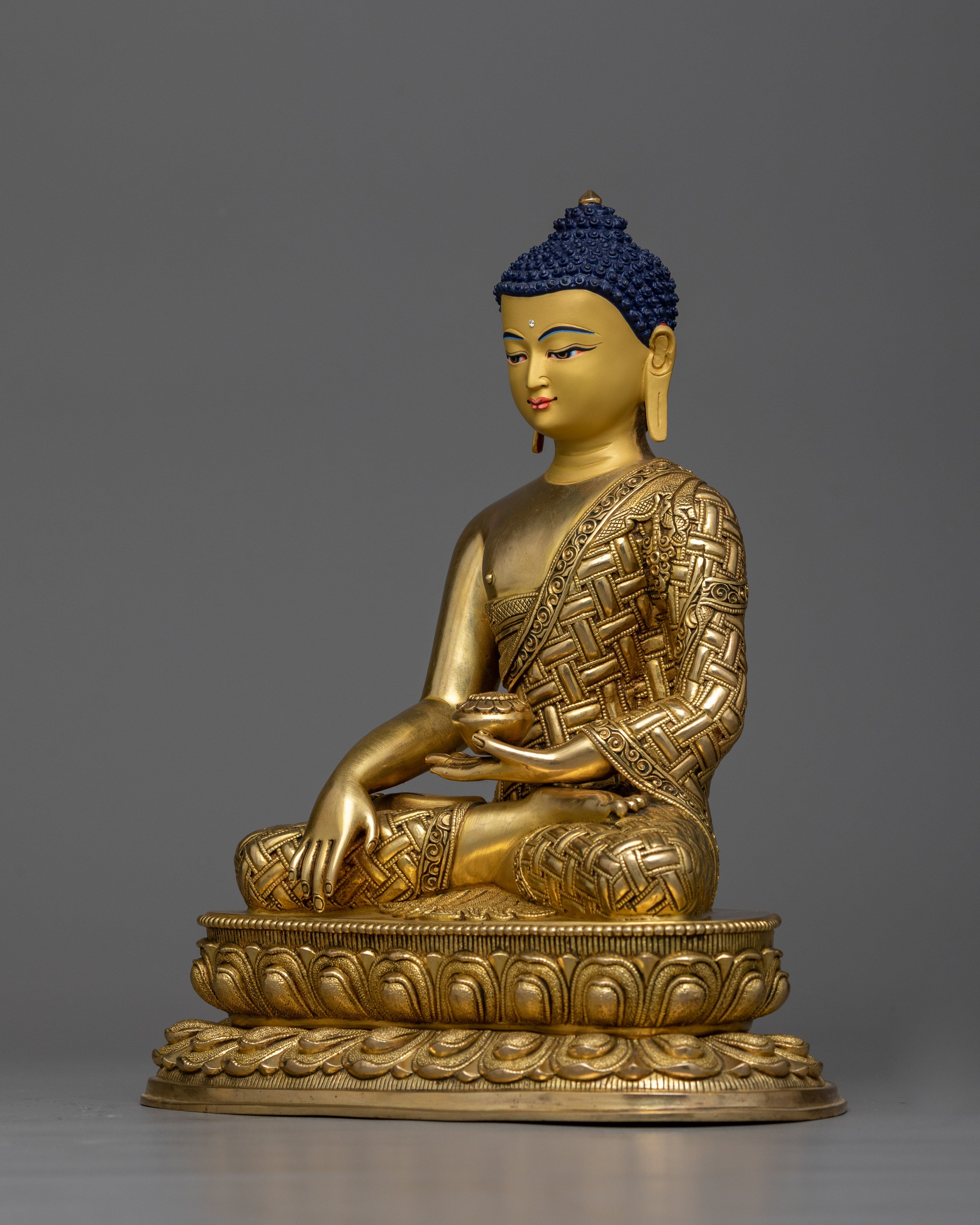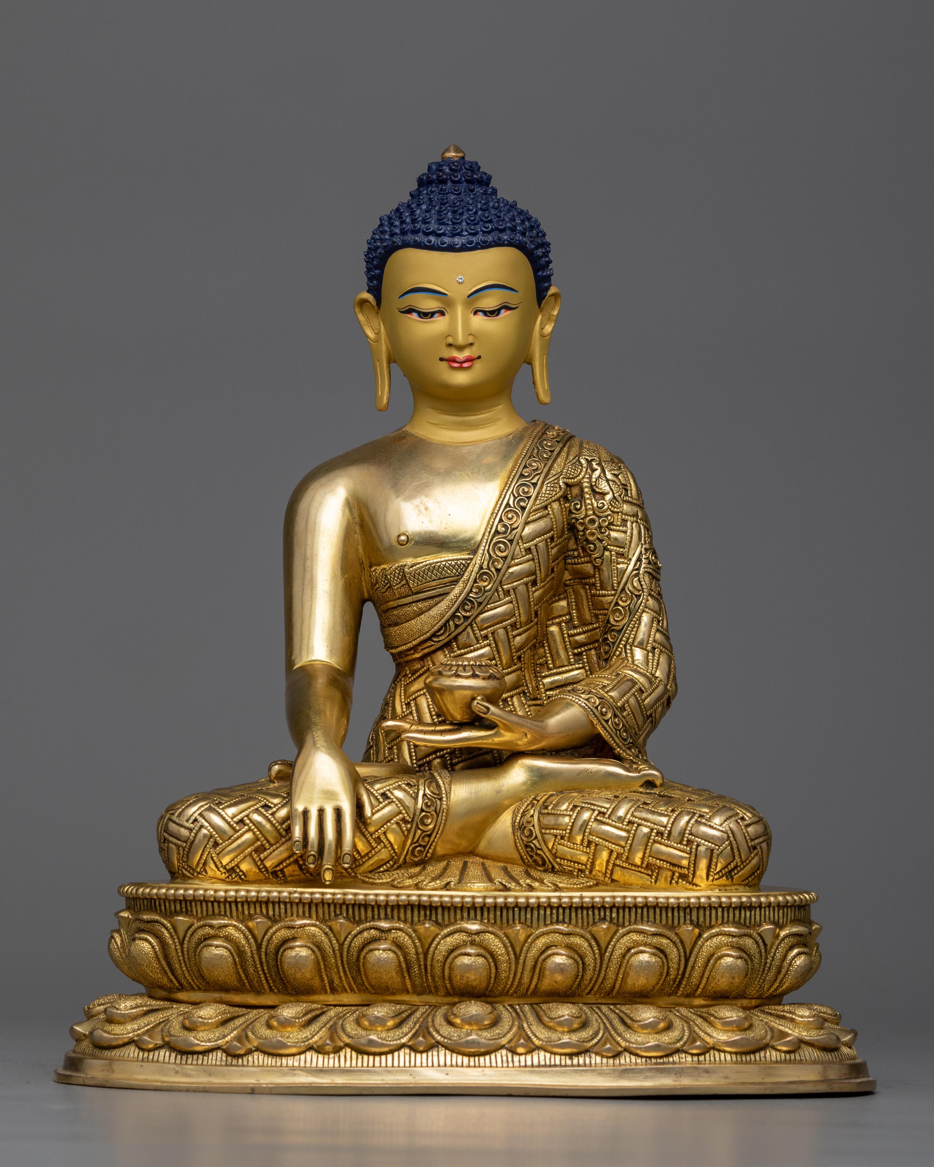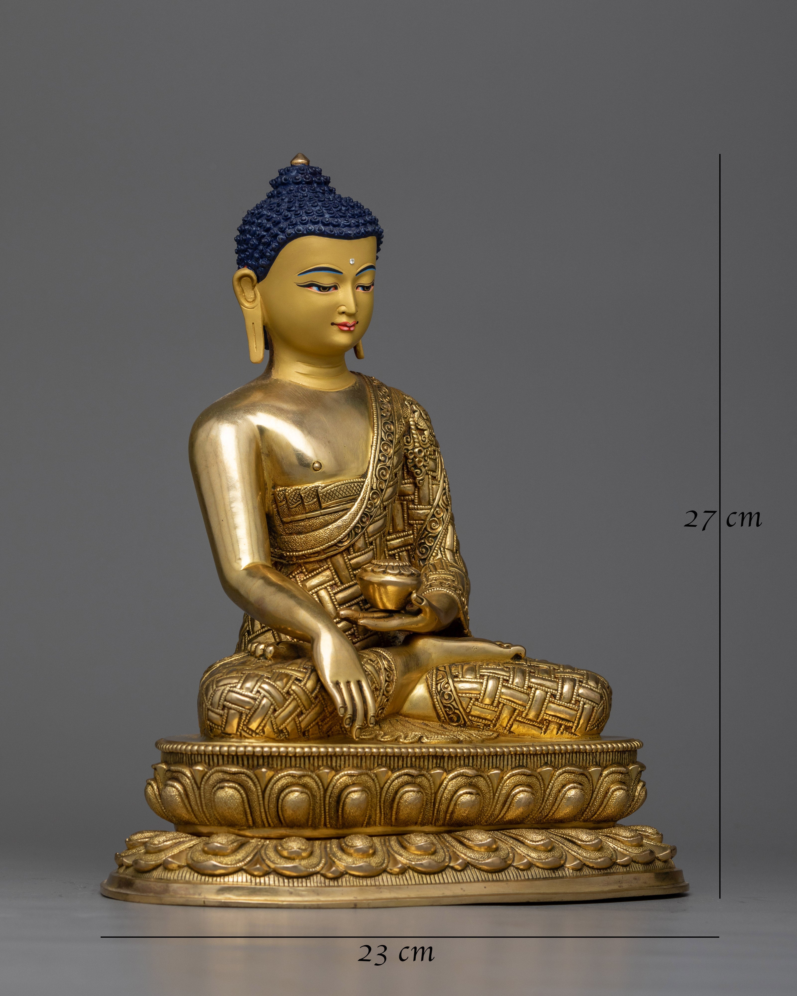 A lavish 24K gold gilding highlights the exquisite beauty and minute intricacies of the Buddha's robes, tranquil demeanor, and significant mudras. The sculpture was painstakingly crafted from premium copper. The gold & acrylic paintings add layers of vibrancy and depth, capturing the essence of the Buddha's compassionate gaze and the tranquil demeanor that has guided millions of followers.