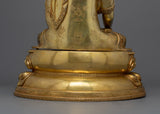 Discover the calm magnificence of the Historical Shakyamuni Buddha Statuette, a distinctive representation that blends the regal symbolism of a crown with the spiritual enlightenment of the Buddha. This statue, which stands 14.5 inches tall and rests on an 11-inch base, weighs 5.40 kg and embodies the profundity of Shakyamuni Buddha's teachings and historical significance. This sculpture, made of a copper body and richly embellished with 24K gold gilding and intricate gold and acrylic paints, perfectly conveys the Buddha's profound wisdom and transcendent beauty.