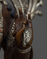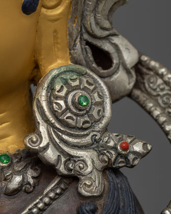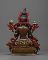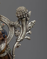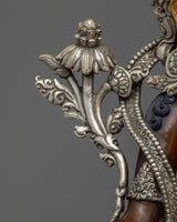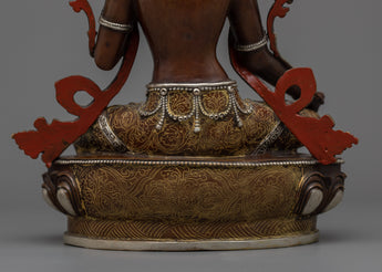 Are you looking for a spiritual enclave emblem of active compassion and quick response? Take a look at our Buddhist Tara Statue. This robust statue weighs 4.13 kg and is 12.9 inches tall with a strong base of 9.4 inches. The oxidized copper body is handcrafted in Nepal and meticulously adorned with 24K gold Powdered and silver plating, as well as beautiful acrylic paintings.