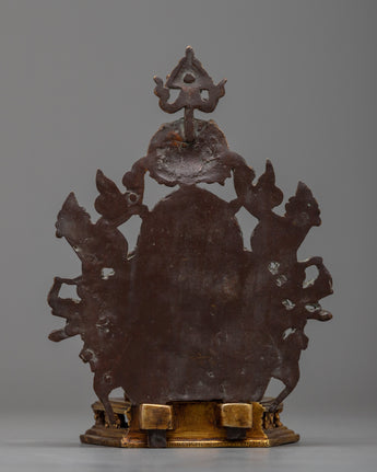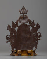 The antique finish is symbolic as well as aesthetically pleasing. It embodies Amitabha's age-old teachings, stressing rebirth in the Pure Land, and serves as a mirror to the timeless journey of souls seeking eternal comfort. This statue is a remarkable spiritual gem due to its attention to detail and deep symbolism.