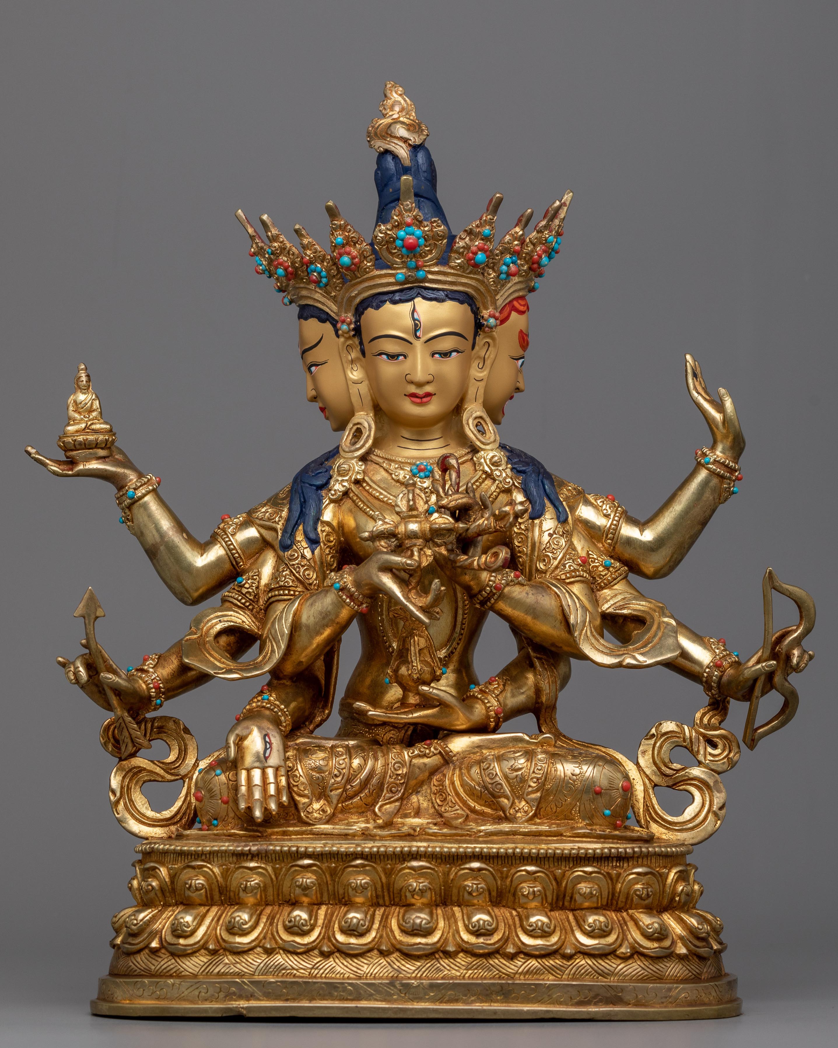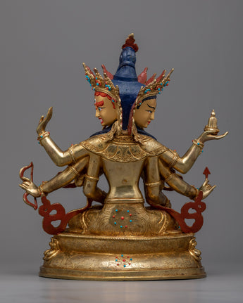 Introducing the majestic statue of the goddess of liberation and longevity, Namgyalma. Standing 12.9" tall and beautifully gilded in 24K gold, this hand-crafted copper statue is a potent representation of the Vajrayana Buddhist tradition.