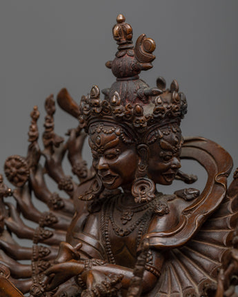 Exploring Time and Enlightenment Through Oxidized Copper Mastery "Kalachakra Deity Statue"