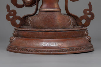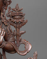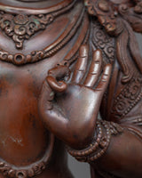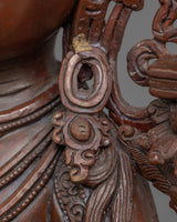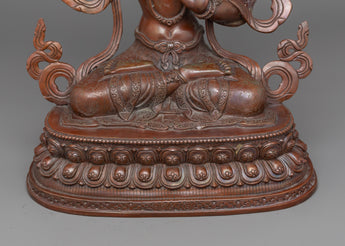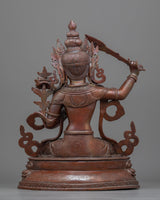 With the help of the Knowledge Deity Manjushri Statue, you can open the doors to profound insight. This elegant statue, which is made of fine oxidized copper, captures the spirit of Manjushri, the Buddhist deity of knowledge and wisdom. This statue is a potent emblem of spiritual and intellectual enlightenment because of its tranquil countenance and elegant position.