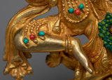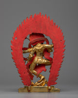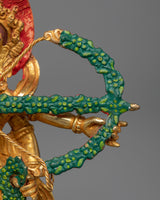 This sculpture, made of high-quality copper, is embellished with a beautiful 24K gold gilding, which lends an air of elegance and divine presence. The gold plating not only emphasizes the statue's superb craftsmanship, but also represents the goddess' brilliant appeal and powerful forces. The sculpture is further adorned with elaborate gold and acrylic paintings, which effectively depict Kurukulla's dynamic and appealing shape.
