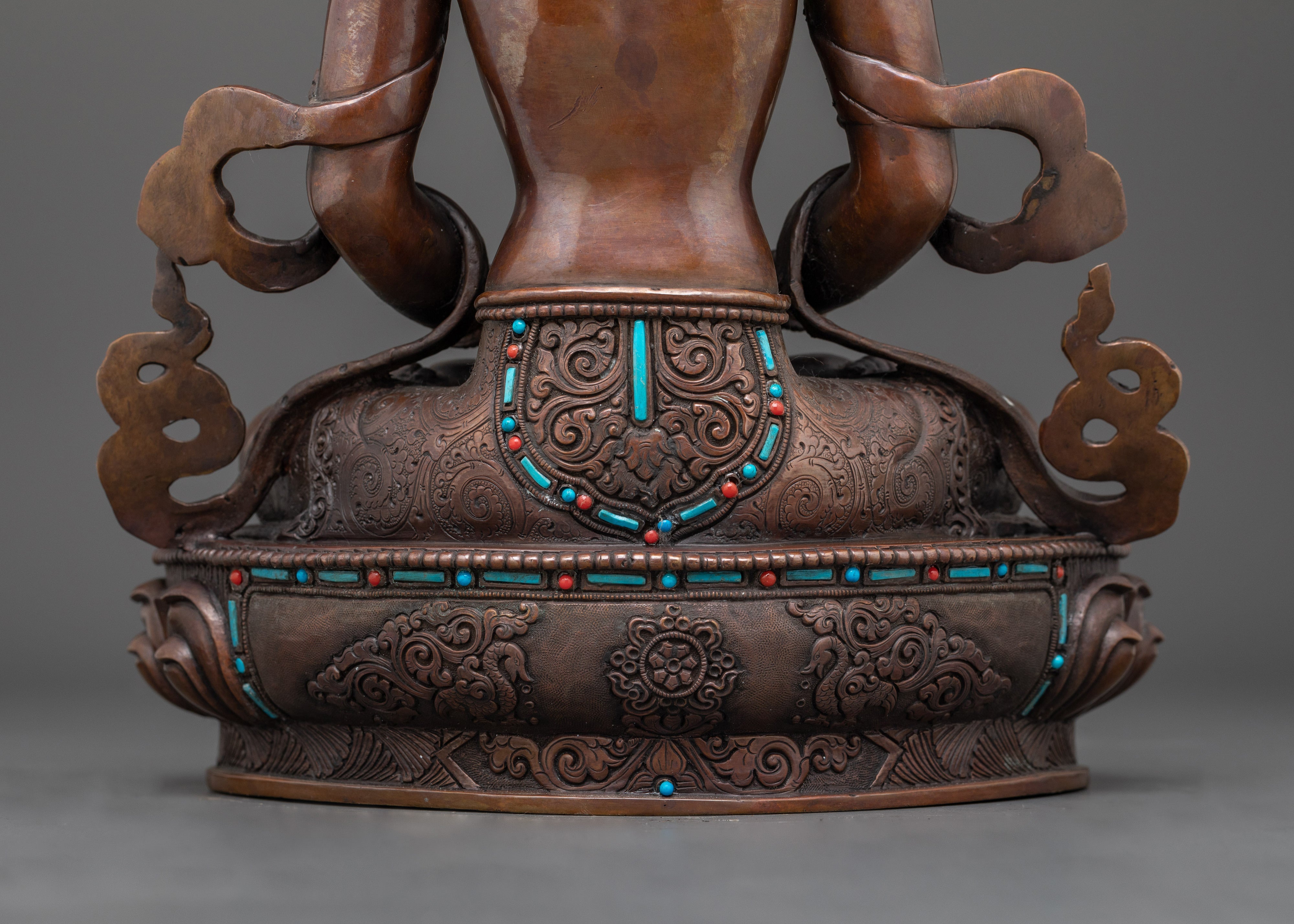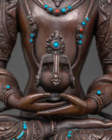Traditional Buddha Long Life Deity Amitayus Statue | Oxidized Copper Statue