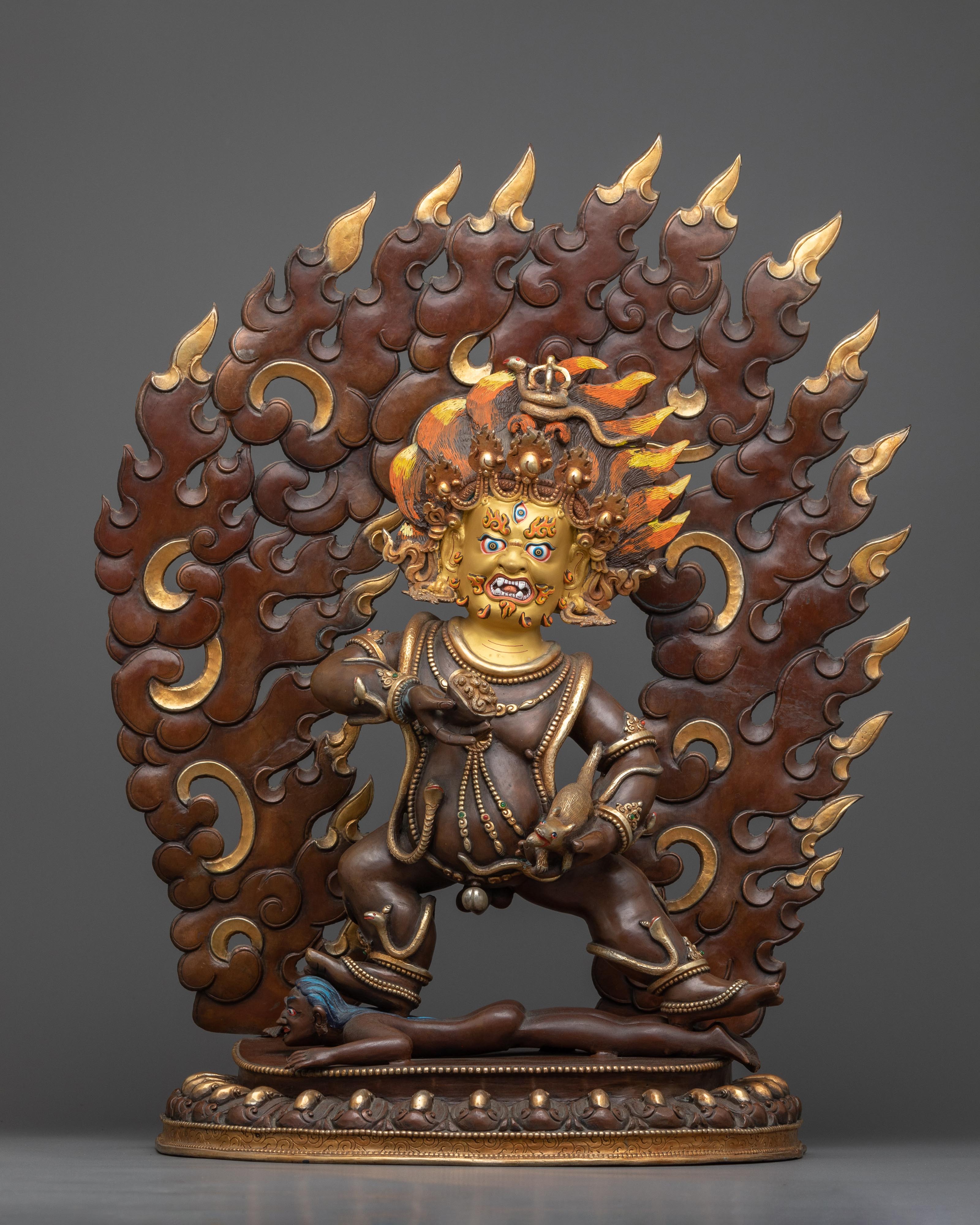 Lord Kuber, the regent of prosperity, combines perfectly with Black Dzambhala, a Tibetan Buddhist emanation of Chenrezig dedicated to eradicating poverty and bestowing wealth. Lord Kuber Black Dzambhala, sometimes represented with a mongoose spewing gems, is a beacon for those seeking both material wealth and spiritual knowledge, making him a renowned figure in both religions.