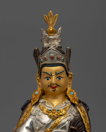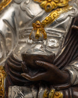 Lotus-Born Rinpoche Guru Statue with Oxidized Copper Body and Silver-Plated Detailing
