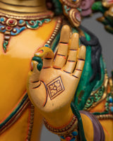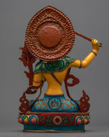 This stunning Manjushri Painted Statue is a magnificent portrayal of the Bodhisattva of Wisdom that will elevate both your interior design and spiritual practice. This monument, standing tall, embodies the spirit of Manjushri, whose sword pierces ignorance and illuminates the way to knowledge and enlightenment for all creatures.