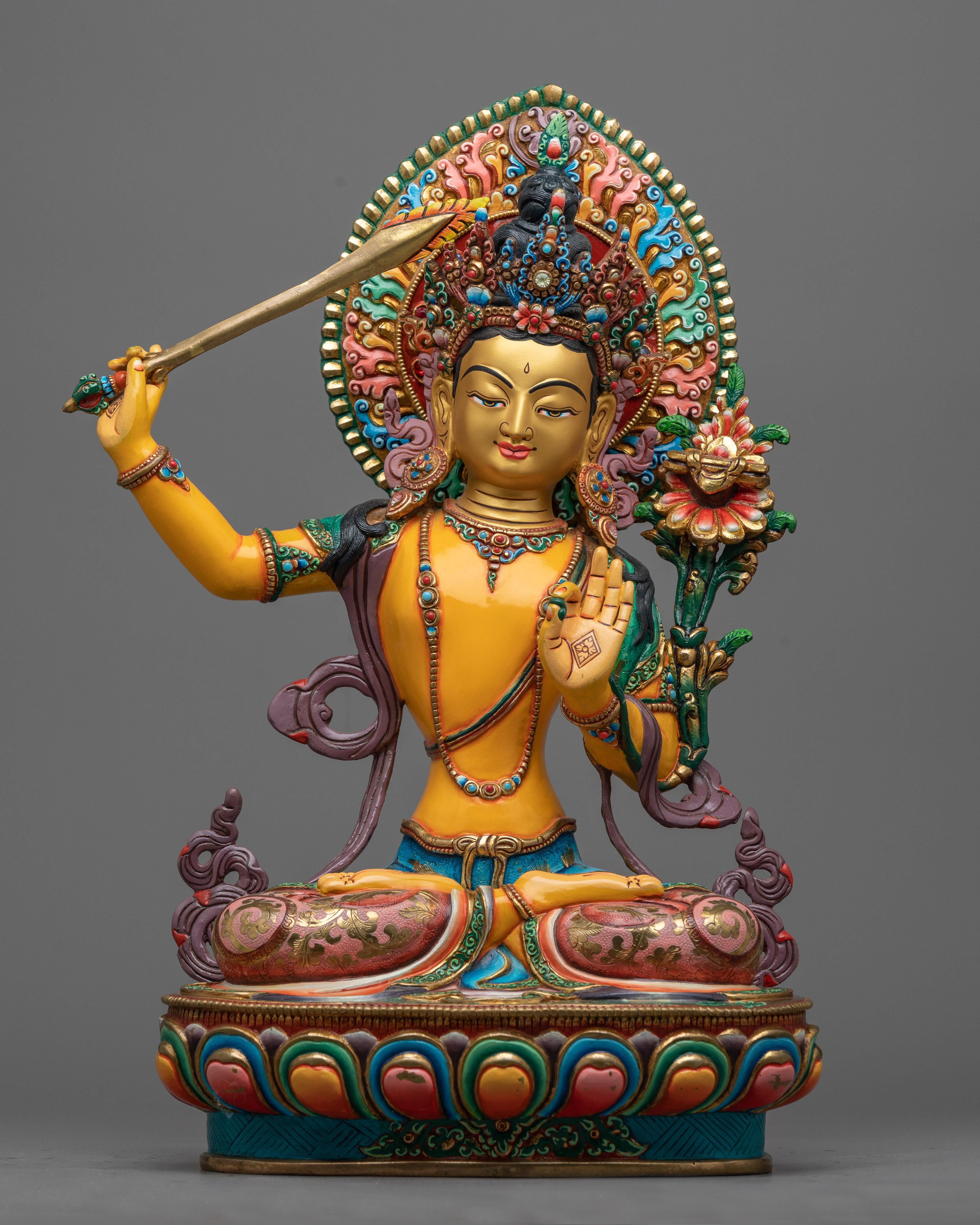 Magnificent Manjushri Painted Statue | Illuminate Your Space with the Wisdom