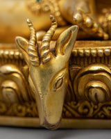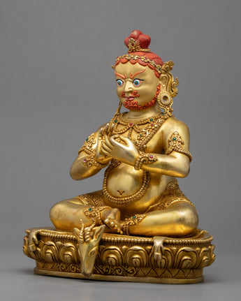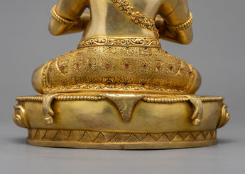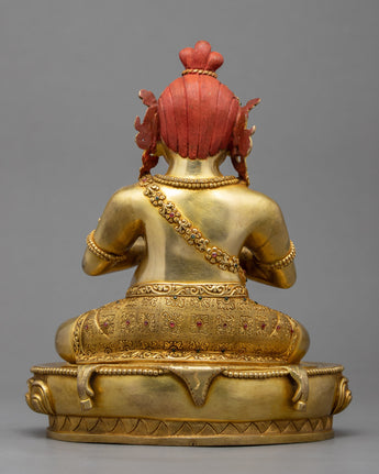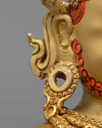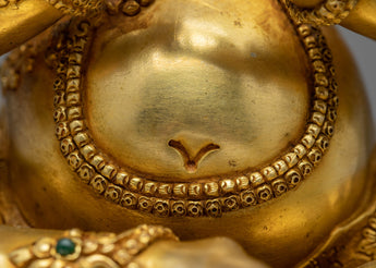 Utilizing the traditional Himalayan sculpting method, we have precisely molded Mahasiddha Virupa Traditional Statue. The body is made up of copper, which is then glided with 24K pure gold. You can use the figure numerous occasions, including many Buddhist traditions and even regular yoga or meditation routines. We have decorated the deity with precious coral, and turquoise. The sculpture reflects an image of the Buddhist Master seated on a lotus seat with an semi wrathful expression.