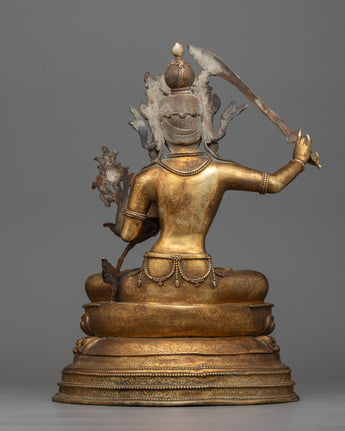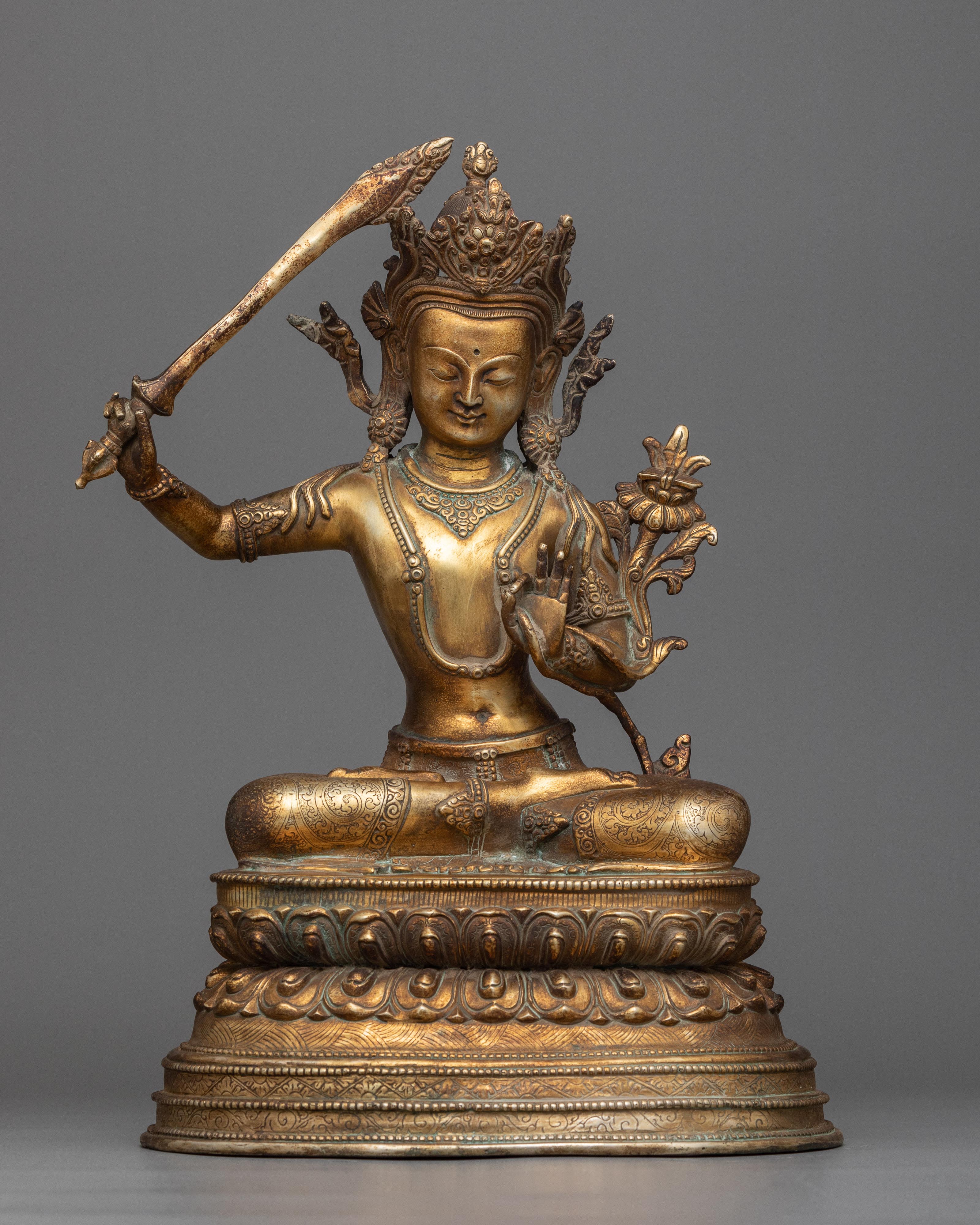 Manjushri Antique Finished Statue in 24K Gold | Embodiment of Transcendent Wisdom