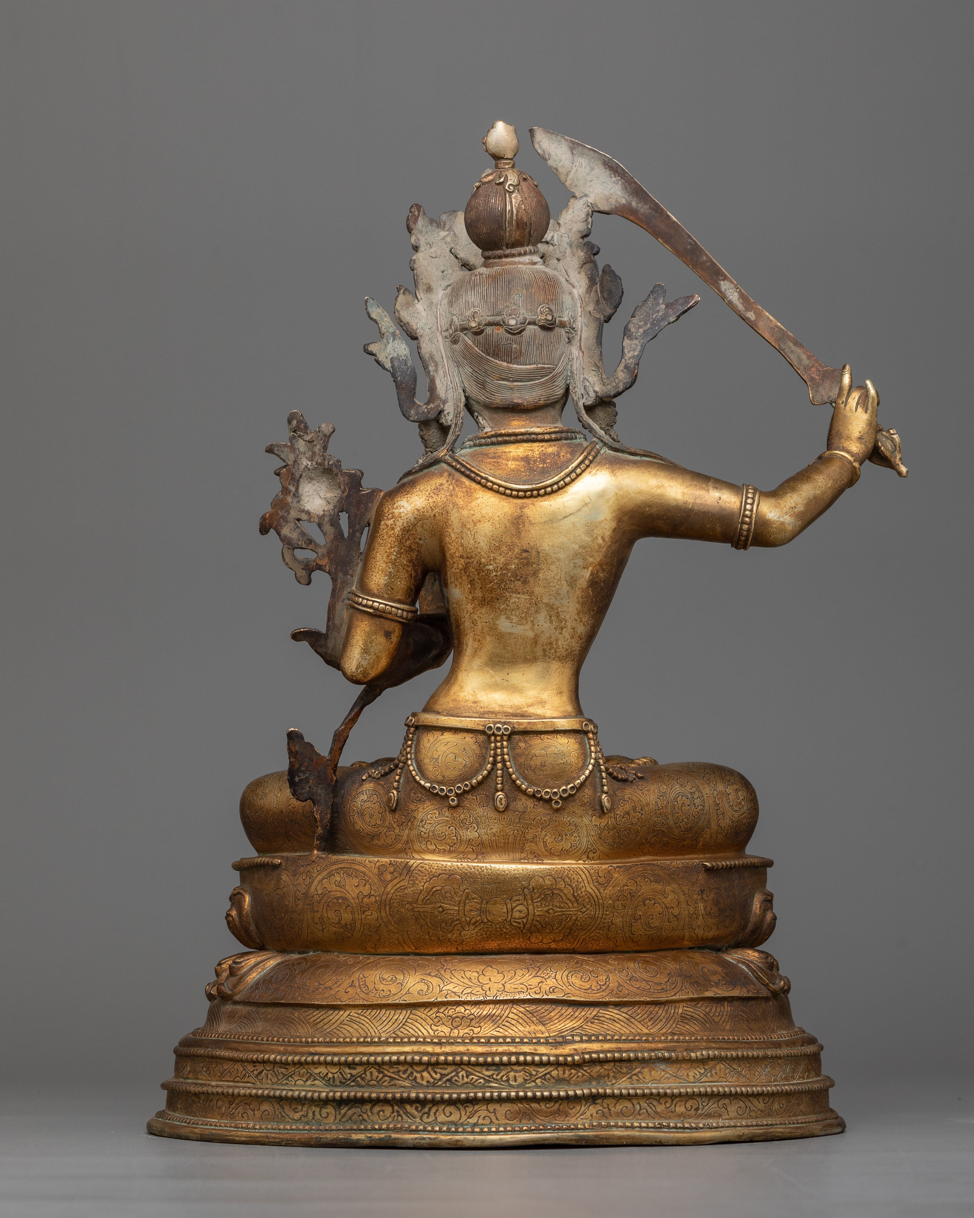 Discover the Depth of Manjushri's Wisdom - Gold Gilded, Antique Sculpture