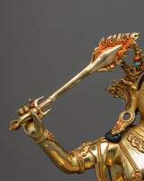 Tibetan Gold Plated Manjushri Bodhisattva Deity Statue