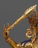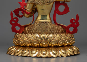 The statue is adorned in sumptuous 24k gold plating and sparkles with ethereal magnificence, which is complemented by precise acrylic paintwork. This sculpture is a wonderful blend of artistic elegance and spiritual profundity, meticulously constructed from a sturdy copper body. It's more than simply a decorative piece; it's a beacon of wisdom, making it an ideal addition to meditation rooms, personal altars, or any spiritual corner of your home.