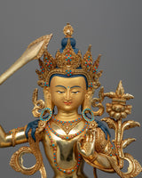 Gold Gilded Statue of Manjushri Bodhisattva of Wisdom