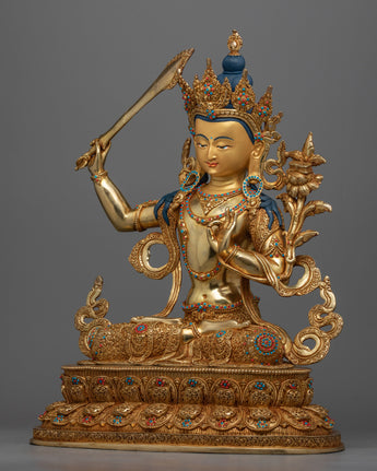 Manjushri Bodhisattva of Wisdom Statue | Traditional Himalayan Buddhist Art