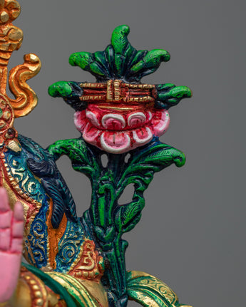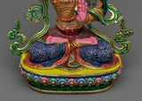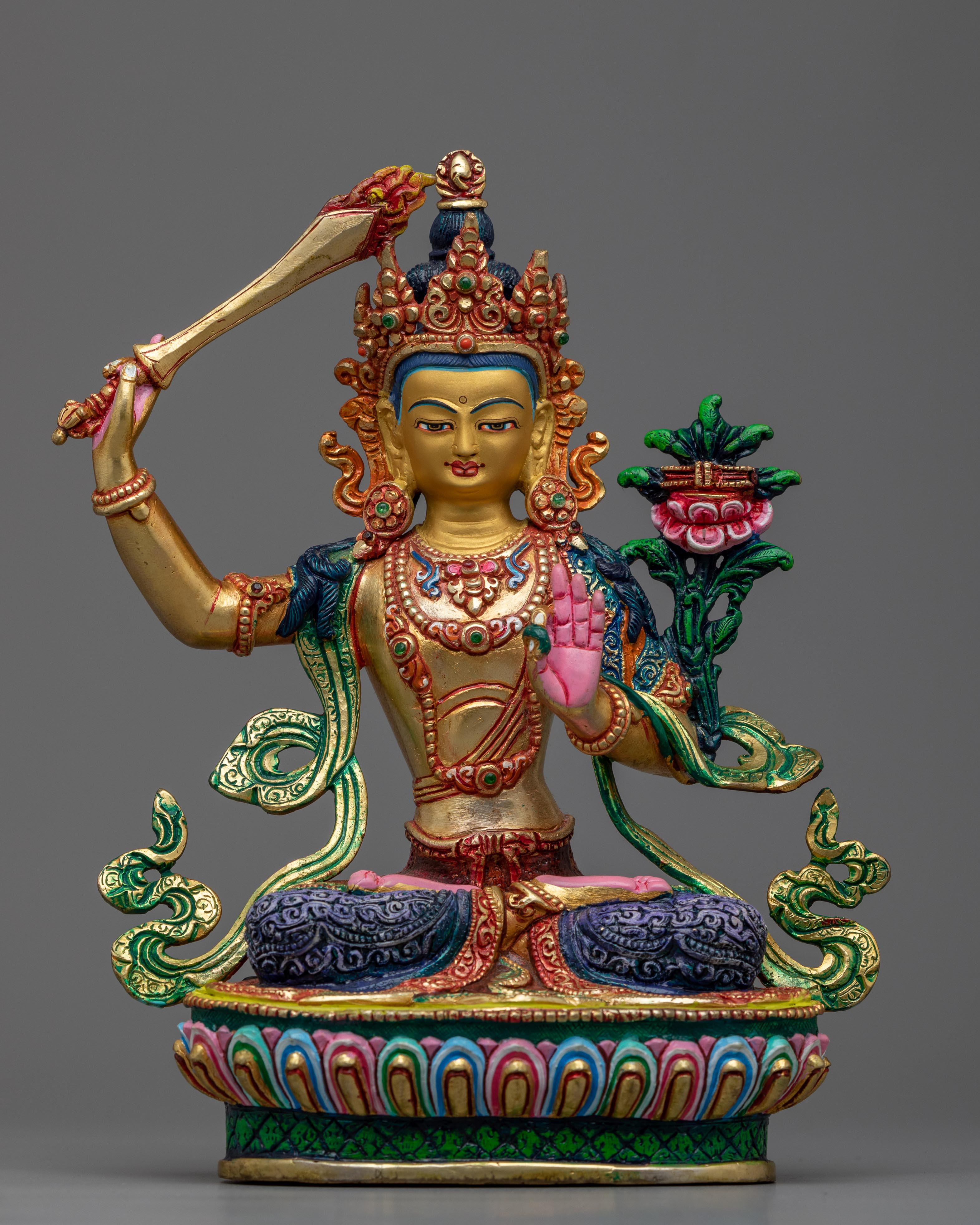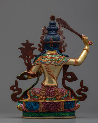 With our meticulously constructed sculpture, you may immerse yourself in the wisdom and enlightening spirit of Manjushri Deity. Manjushri, the deity of divine wisdom and comprehension, wields the fiery sword that pierces ignorance and delusion, guiding seekers to enlightenment.