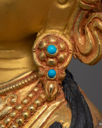 24K Gold Gilded Manjushri Statue Protector of Scholars | Wisdom Deity for Shrine