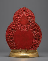 We, Nepalese artists, have meticulously crafted the Tibetan Manjushri statue in our studio. Using a copper body and 24k genuine gold to coat the statue. The statue is depicted seated on a moon disc lotus with a serene expression, holding the sword of wisdom above her head with her right hand. The left hand holds a lotus stem that extends and blooms above her shoulder, which holds the book of wisdom. This statue took our artists months of dedication and hard work to complete.