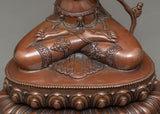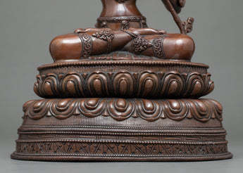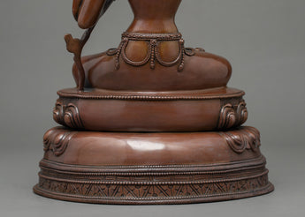 We have exquisitely hand-sculpted the Manjushri Wisdom Deity Sculpture in a traditional Himalayan style made in Nepal. For the molding process, we have used an oxidized copper body. The deity is depicted seated on a moon disc atop Lotus with a tranquil expression He holding a wisdom sword in his right hand and the lotus in his left. The skills for crafting such detailed deity statue has been passed on for generations. It took months of handwork to craft this piece of art. Practitioners like you can benefit from this traditional sculpture in many aspects like meditation, yoga, and other Buddhism practices.