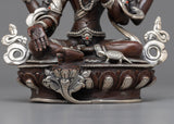 The Mata Lakshmi Statue, which exudes grace and abundance, will take you on a beautiful prosperity voyage. Standing beautifully at 8.3"/21cm, with a solid base of 7.1"/18cm and a weight of 1.81 kg, this work of art combines silver plating with an oxidized copper body to represent purity and prosperity. Bring Mata Lakshmi into your sacred area to adorn it and to bring success and abundance into your life. Allow her warm eyes and kind spirit to fill you and your surrounds with benefits. Welcome the wealth and heavenly grace that Mata Lakshmi has bestowed upon you as you set out on a path of plenty.