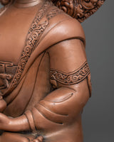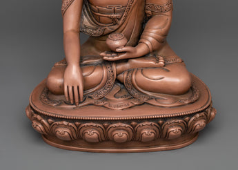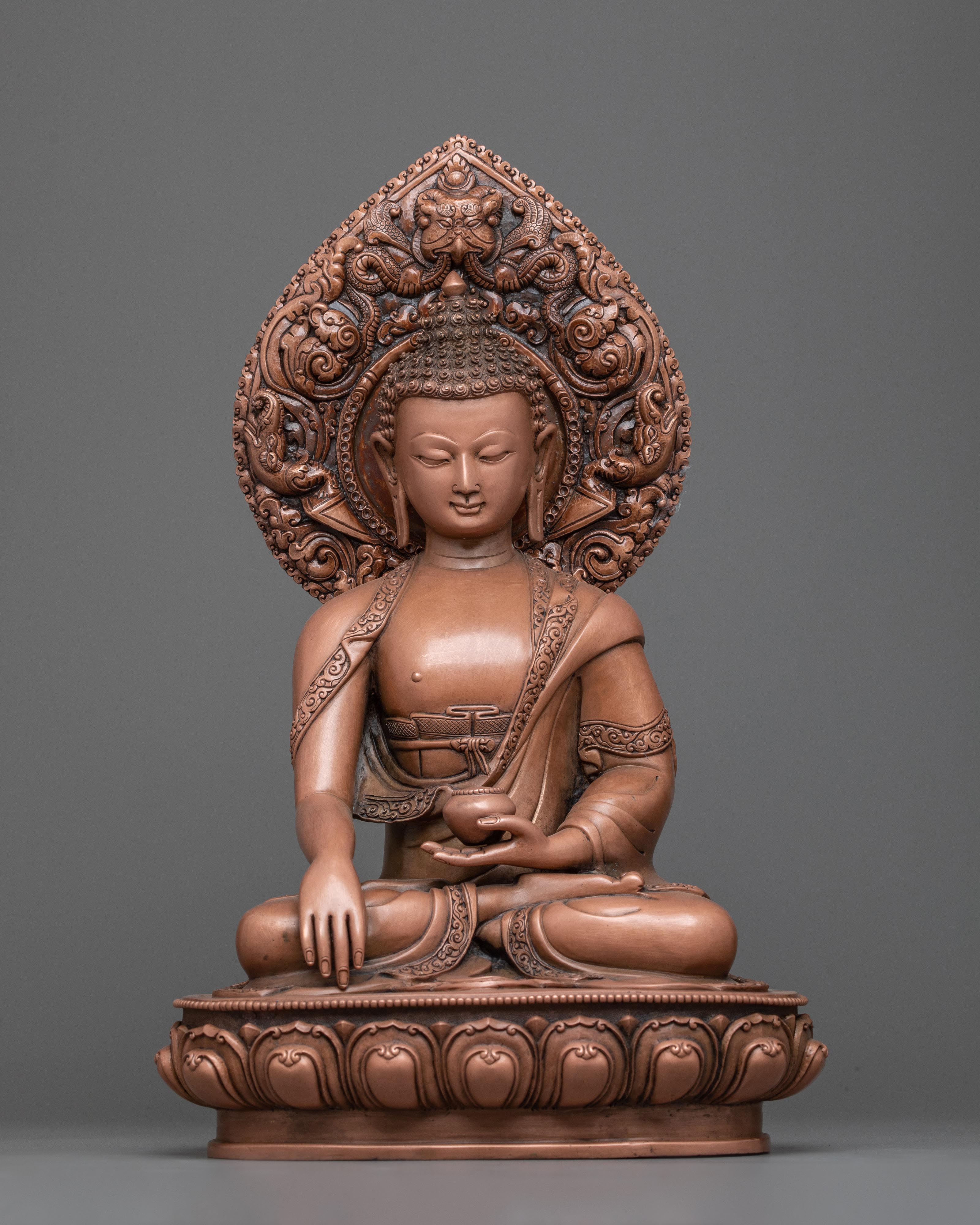 Our Namo Shakyamuni Buddha Oxidized Statue will add grandeur to your spiritual environment. This statue, made of oxidized copper, is a symphony of sublime elegance and intricate craftsmanship, perfect for individuals who love the finer details of spiritual art.