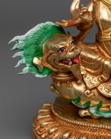 Our Norlha Namtoshe statue, a glowing emblem of riches, prosperity, and success, will brighten up your sacred place. Every aspect of this item, which is embellished with pure 24k gold, reflects the divine wealth bestowed to believers by Norlha Namtoshe. Intricate acrylic accents on a solid copper base attest to Nepalese craftsmanship second to none. This monument not only pleases the eye, but it also functions as a lighthouse, directing one to material and spiritual wealth.
