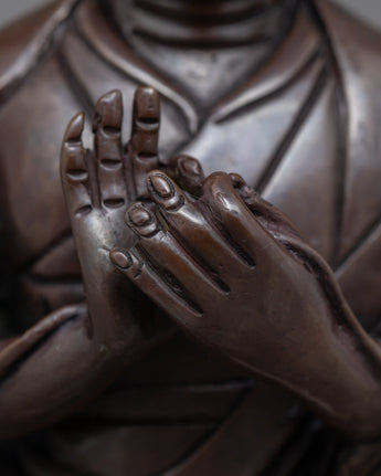 Oxidized Copper Statue For Je Tsongkhapa Mantra Practice | Traditional Tibetan Master Art