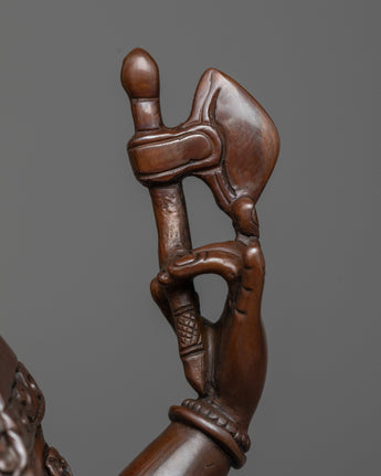 Every detail, including his serene gaze and how he holds himself to show off his regal poise, has been meticulously crafted to evoke devotion and introspection. The oxidized finish lends an air of antiquity and reverence, making this statue a profound addition to any spiritual setting.