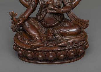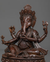 Presenting the Ganesh Oxidized Statue, an enthralling representation of Lord Ganesh, the Hindu deity of wisdom, wealth, and remover of obstacles. This statue, which stands 9.4 inches tall with a 6.6-inch base and weighs 2.24 kg, perfectly embodies Ganesh's majesty and kindness. This sculpture has an oxidized copper body and a classic appearance. The natural patina highlights the fine details and Ganesh's symbolic characteristics.