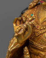 The Padma Rinpoche Statue, precisely carved to perfection, combines excellent work and spiritual artistry. This statue, which is a masterwork of spiritual grace, represents the compassion and knowledge of Guru Rinpoche. With its copper body and 24K gold plated acrylic paintings, it is made of the finest components and exudes a sense of enlightenment and divine grace.