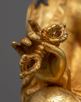 This 19.2-inch Padmasambava Statue is an intricate tribute to the Lotus Born Master, also known as the Guru Rinpoche. Crafted of a robust copper alloy and gilded in 24k gold, this piece is sure to become a treasured part of your altar. Its fine detailing reflects high-quality craftsmanship and will bring a unique touch of beauty to your home or office for your mindfulness practice.
