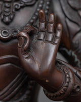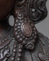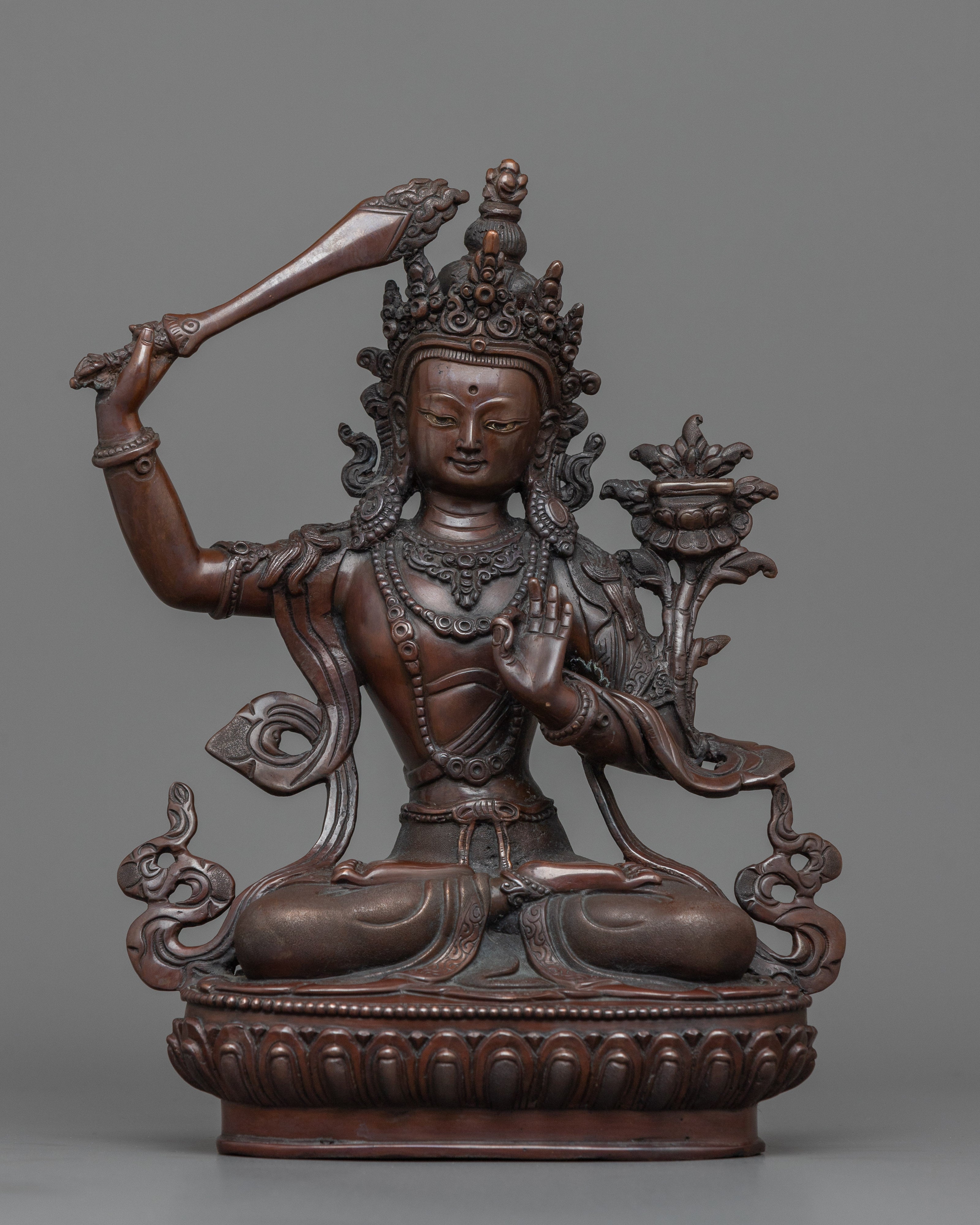With our lovely Statue for Manjusri Monastery, recognized as the wisdom deity, immerse your spirit in the essence of enlightened wisdom. This sculpture, expertly crafted from quality oxidized copper, embodies the profound sagacity and discerning wisdom associated with this distinguished Buddha.
