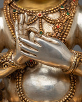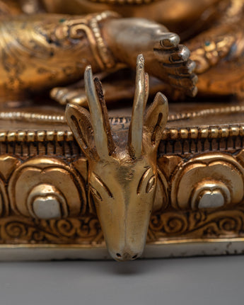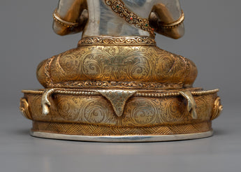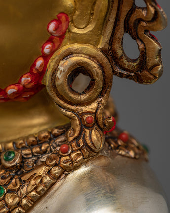 The Preaching Master Virupa Statue is a magnificent representation of heavenly wisdom and enlightenment that will elevate your spiritual sanctuary. This statue, which weighs 2.37 kg and is 9.1" (23 cm) tall and has a copper body, elaborate gold and acrylic paintwork, and silver plating, is a work of unmatched aesthetic appeal. Immerse yourself in the transcendent energy of Master Virupa and embrace the teachings of wisdom and compassion that he embodies. The presence of Guru Virupa in your sacred space inspires you to embody wisdom and enlightenment in every aspect of your life. Allow his caring energy to wrap you in a cloak of serenity and inner peace, guiding you to a greater awareness of the true nature of life.