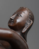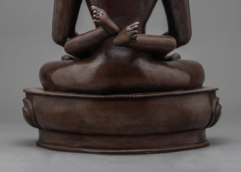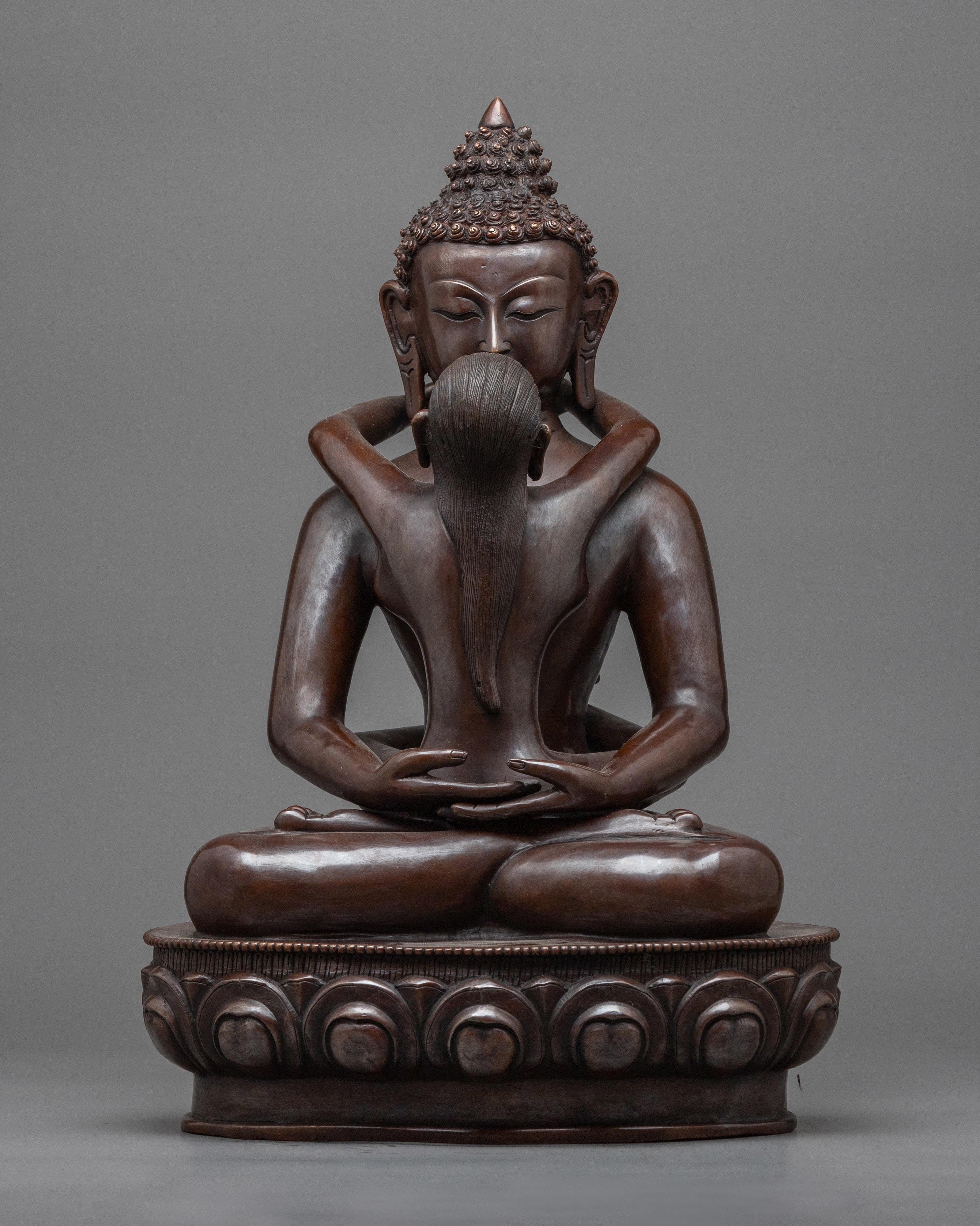 The statue's oxidized copper body gives it an ancient, timeless look, highlighting the depth and eternity of the teachings it symbolizes. The material's beautiful patina highlights the fine features of the holy couple, from their tranquil smiles to the symbolic poses indicating their enlightened state. This sculpture is not merely an object of veneration but a profound meditation aid, inviting contemplation on the nature of reality, the interconnectedness of all beings, and the path to enlightenment.