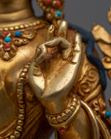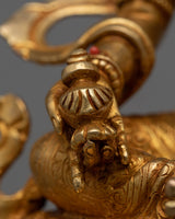 The sculpture is expertly crafted from a copper body, which was selected for its robustness and historical significance in the creation of holy items. The statue is then lavishly wrapped in 24K gold plating, which adds a sense of grandeur and purity to the warm tones of the copper. This gold layer not only enhances the sculpture's visual appeal but also symbolizes the divine energy and enlightened presence of Red Tara.