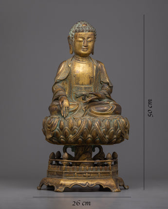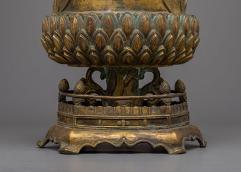 This intriguing statue is the ideal addition to your meditation room or holy area since it is an astounding 19.6 inches in height and has a 10.2-inch base. The statue weighs 12.14 kg and has a copper body with a 24K gold gilded finish. This statue is a remarkable piece of art since the antique finish highlights the craftsmanship's beauty and attention to detail.